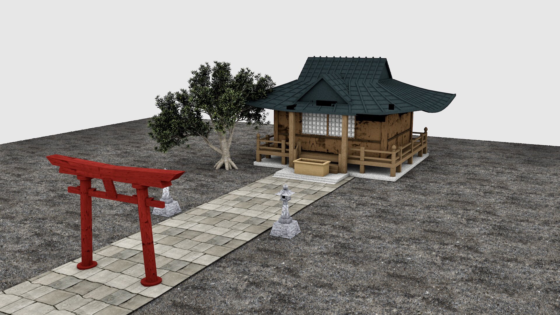 未完成でしたが、その時に作ってみた作品がこちらの鳥居と神社。