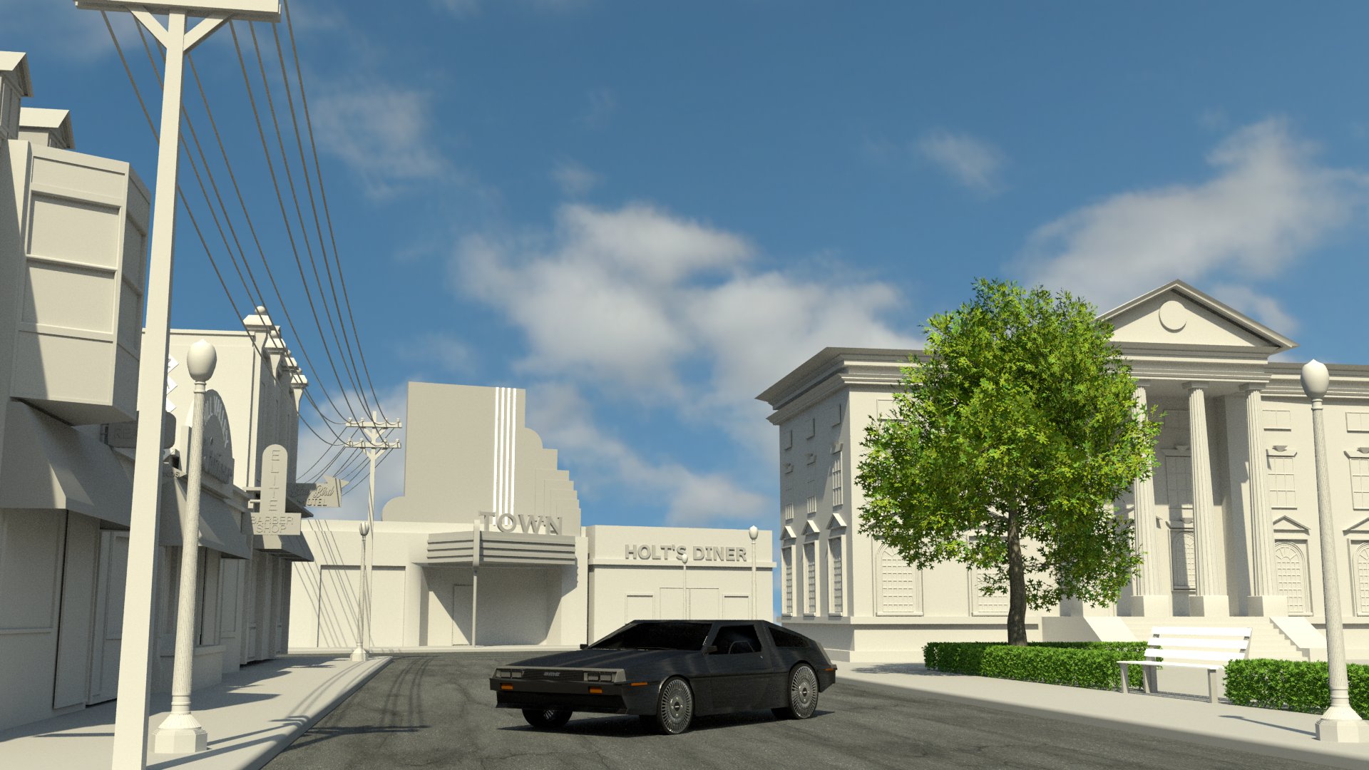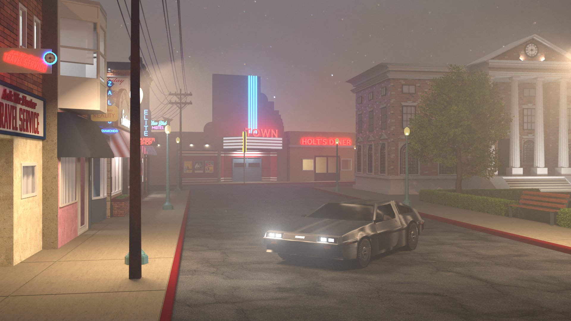 本当はデロリアンが出来上がればそれで終了の予定だったのですが、バック・トゥ・ザ・フューチャーの世界観も出したいと思い、ヒルバレーも作ることに。