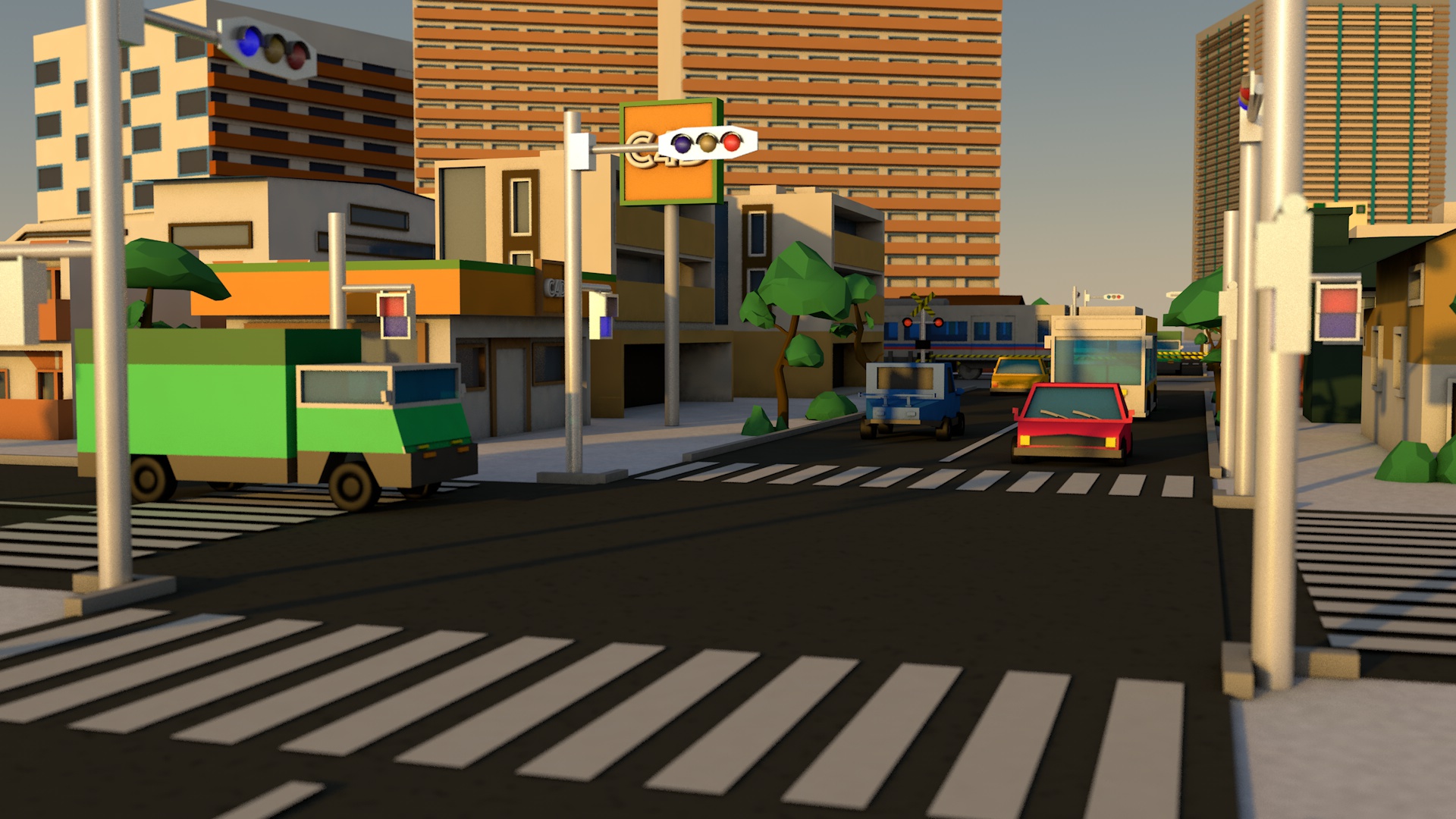 最初の数週間はCinema 4Dに慣れるのにいっぱいいっぱいで、立方体などオブジェクトを組み合わせるだけのモデリングしか出来なかったので正直不安でしたが、ローポリゴンでモデリングするチュートリアルで練習していき、一つの街を作ることに。