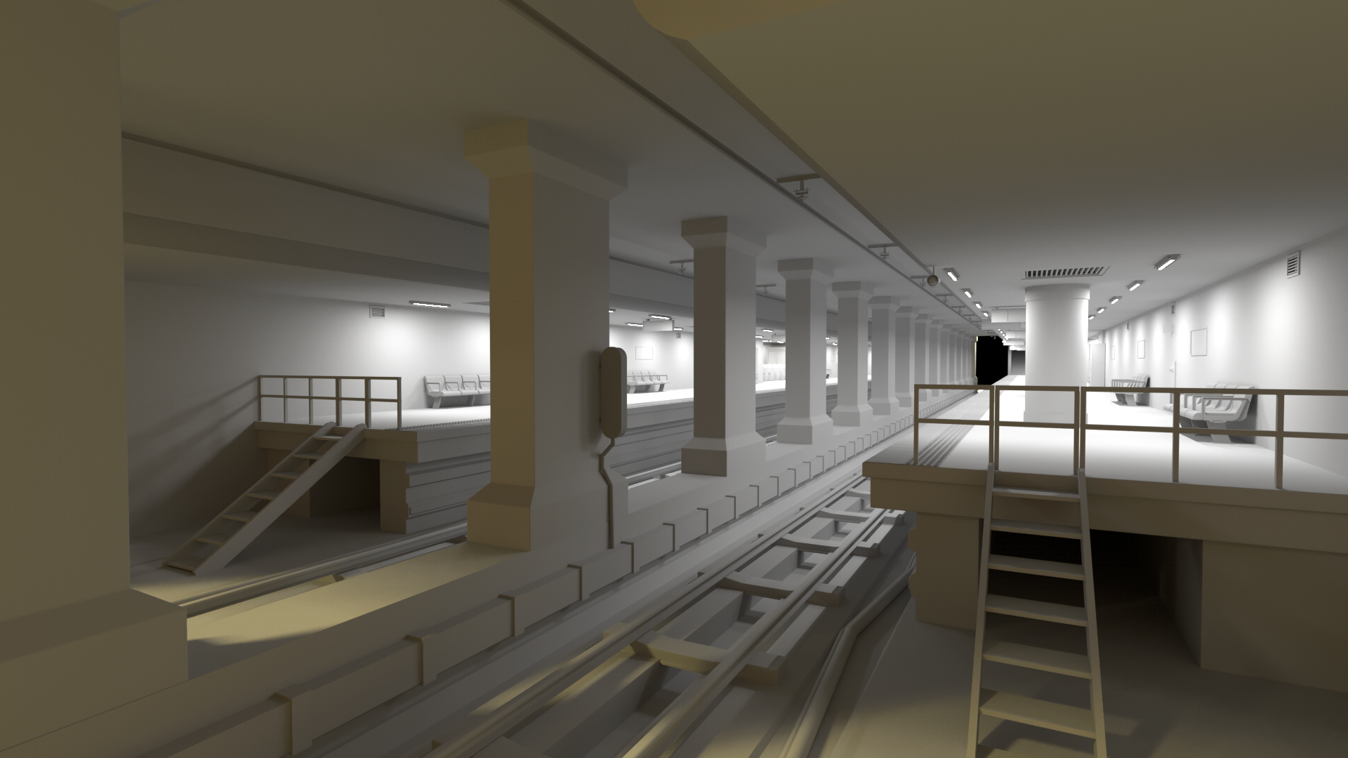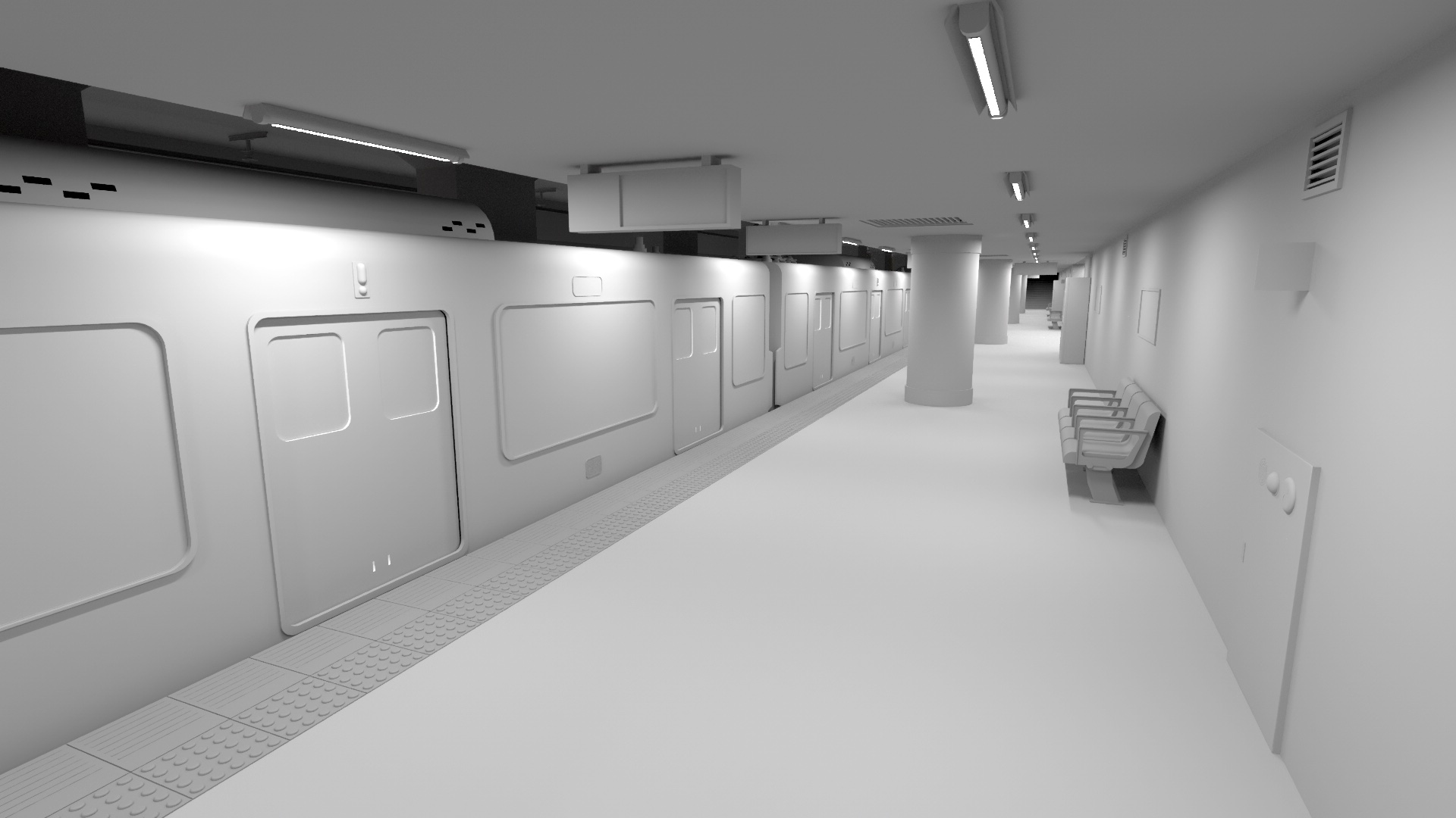 テクスチャもまだ追加していないので未完成状態ですが、6日程度で電車の外観、駅のホーム、電車の内装をモデリングすることが出来ました。