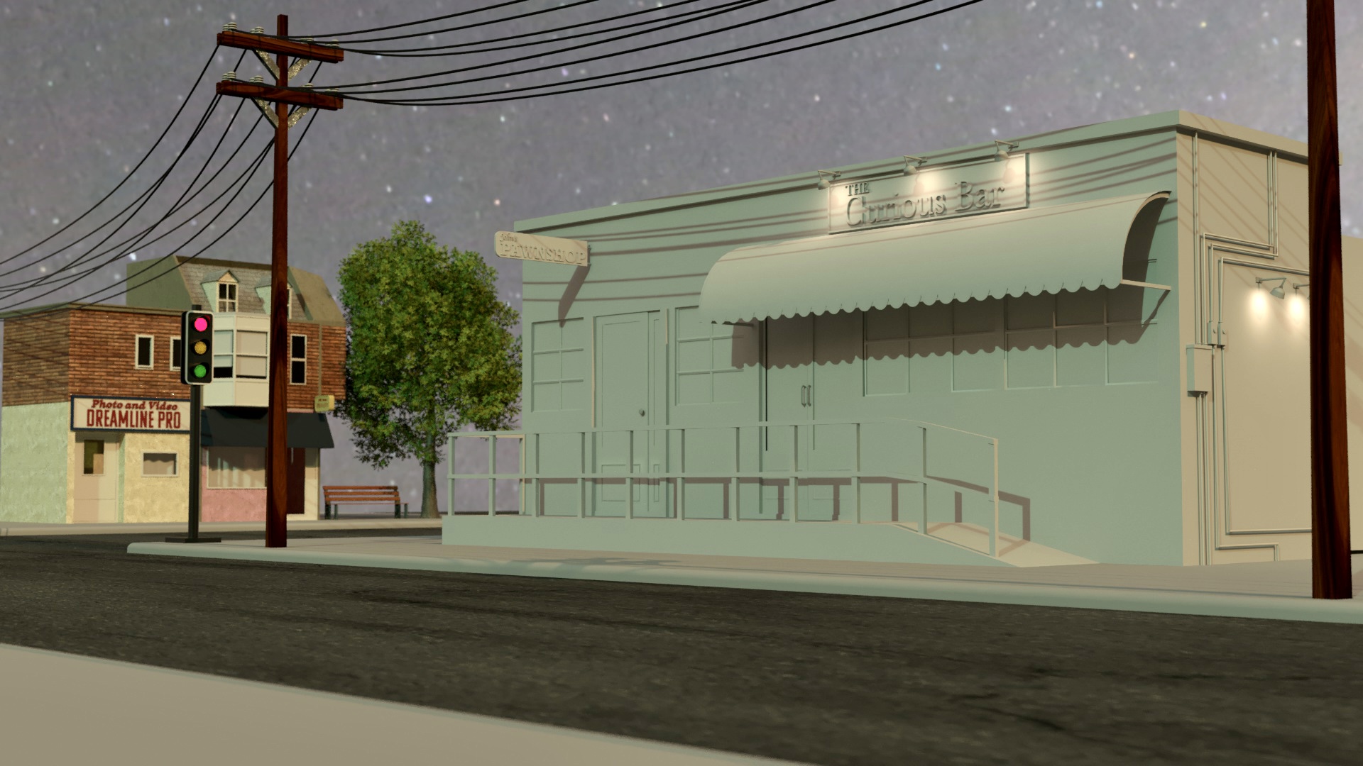 完成したプロジェクトがこちら。3DCGを入れたシーンが天井の「お座りください」とバーの外観、そして最後のロゴ部分です。