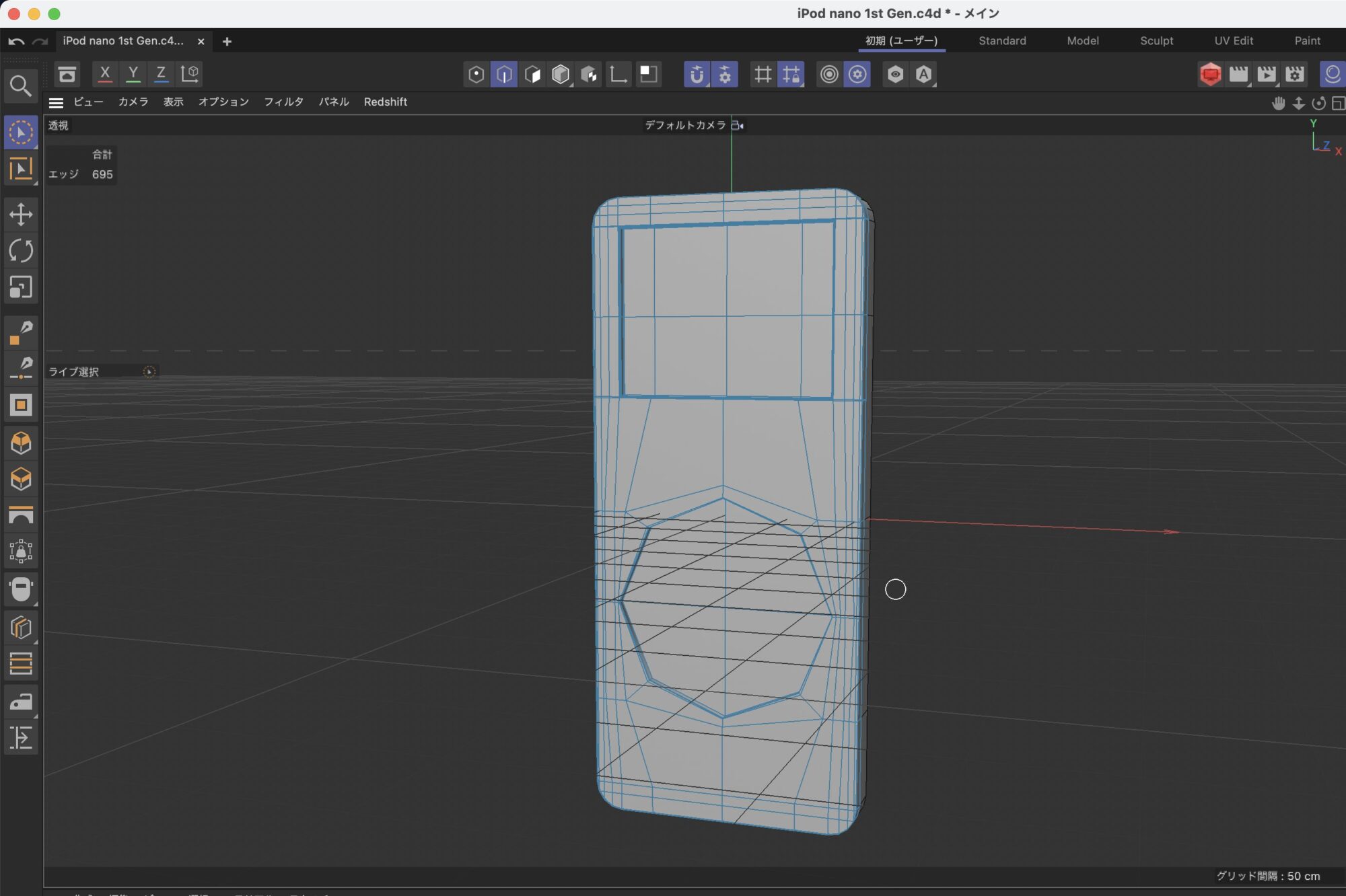 iPod touchのモデリングでは見ての通り、トポロジーがすごいことになっているものの、iPod nanoのものはより綺麗に仕上がるようになりました。この時からサブディビジョンサーフェス(SDS)を活用するようになりました。