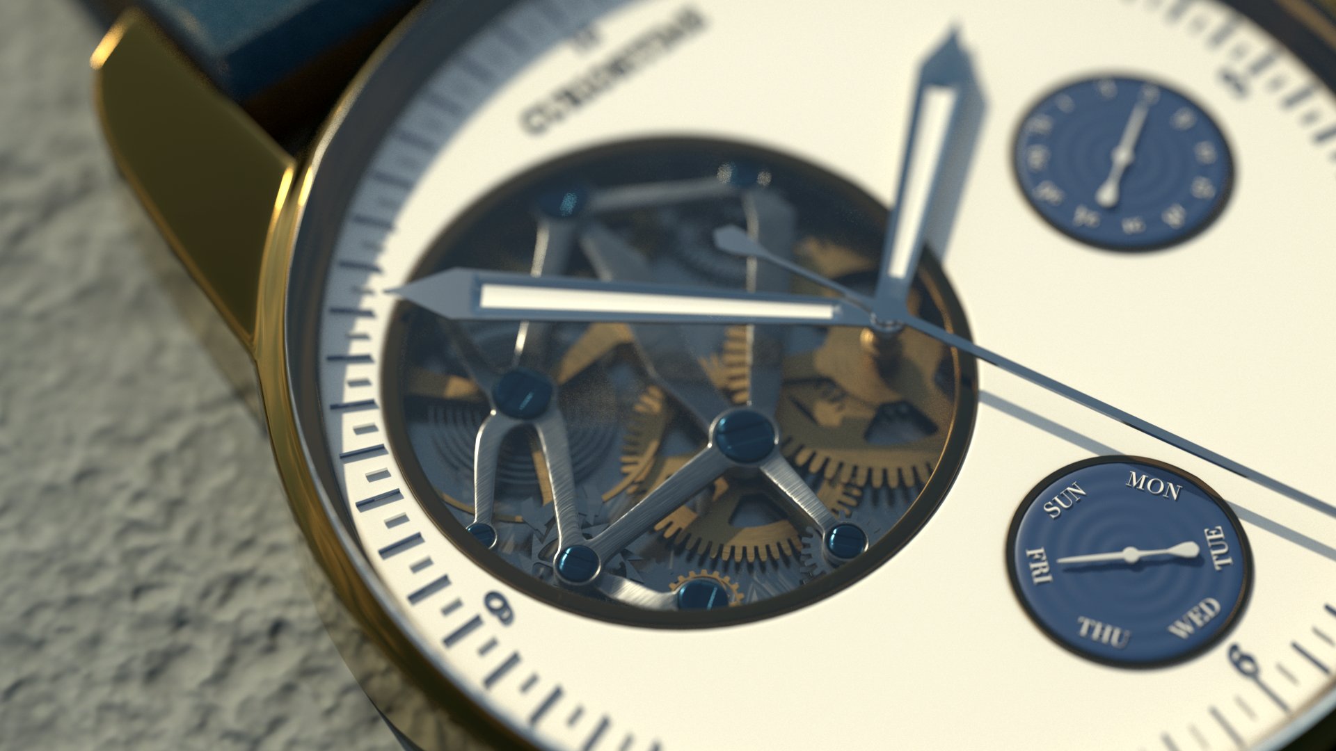 架空シリーズで2年目の筆者的に最高傑作がこちらの腕時計です。機械式腕時計は持ったことがないので、オンラインで腕時計を参考にしながらオリジナルのデザインを作りました。