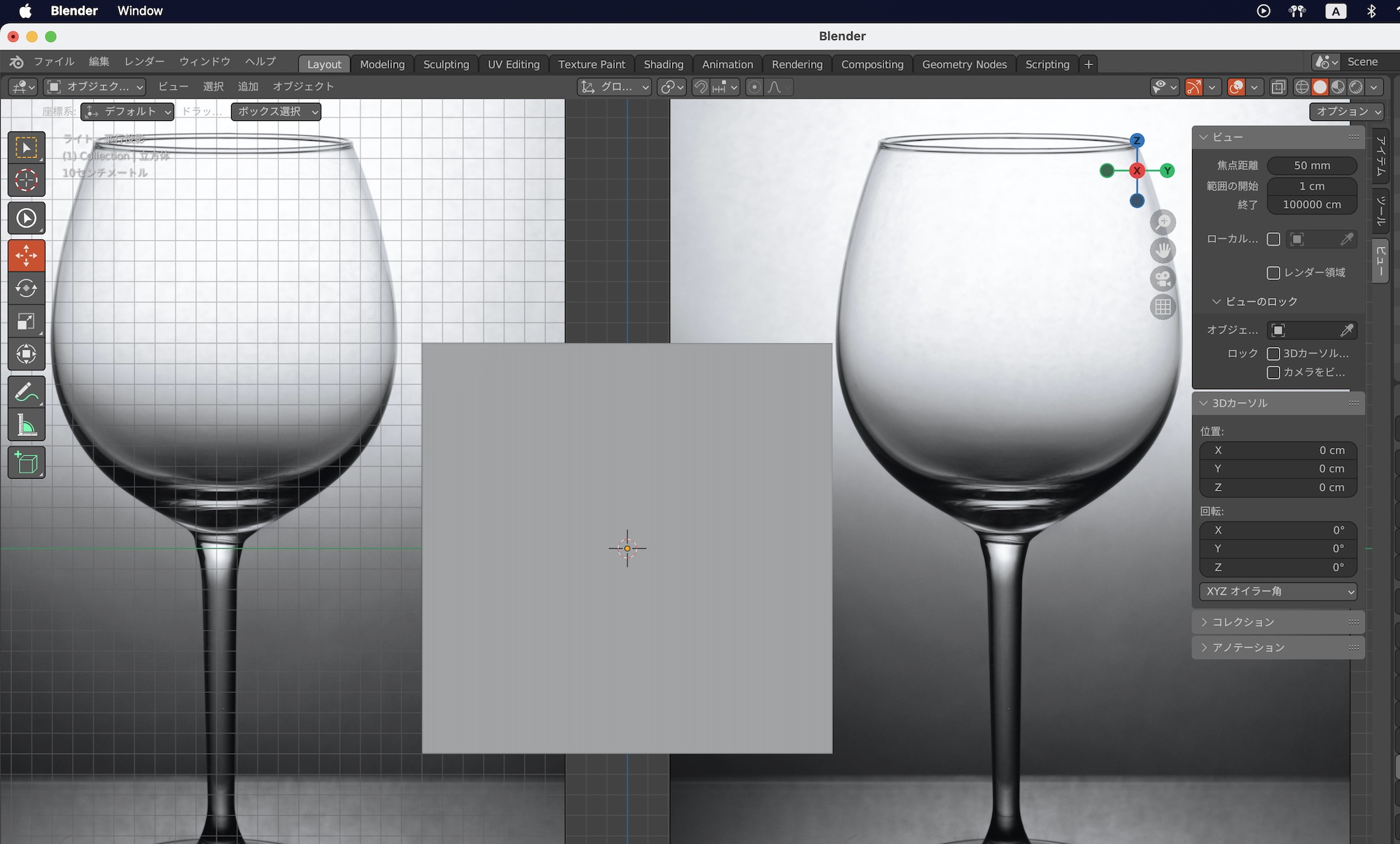 前の項目では「背景」を使った方法を紹介しましたが、「参照」を選んでもデフォルトの設定が異なるだけで、基本的に同じものとなっています。下の画像は「背景」と「参照」の両方をビューポートに追加したもの。