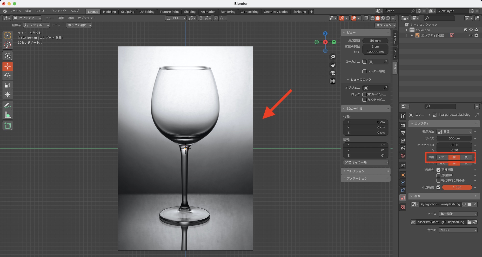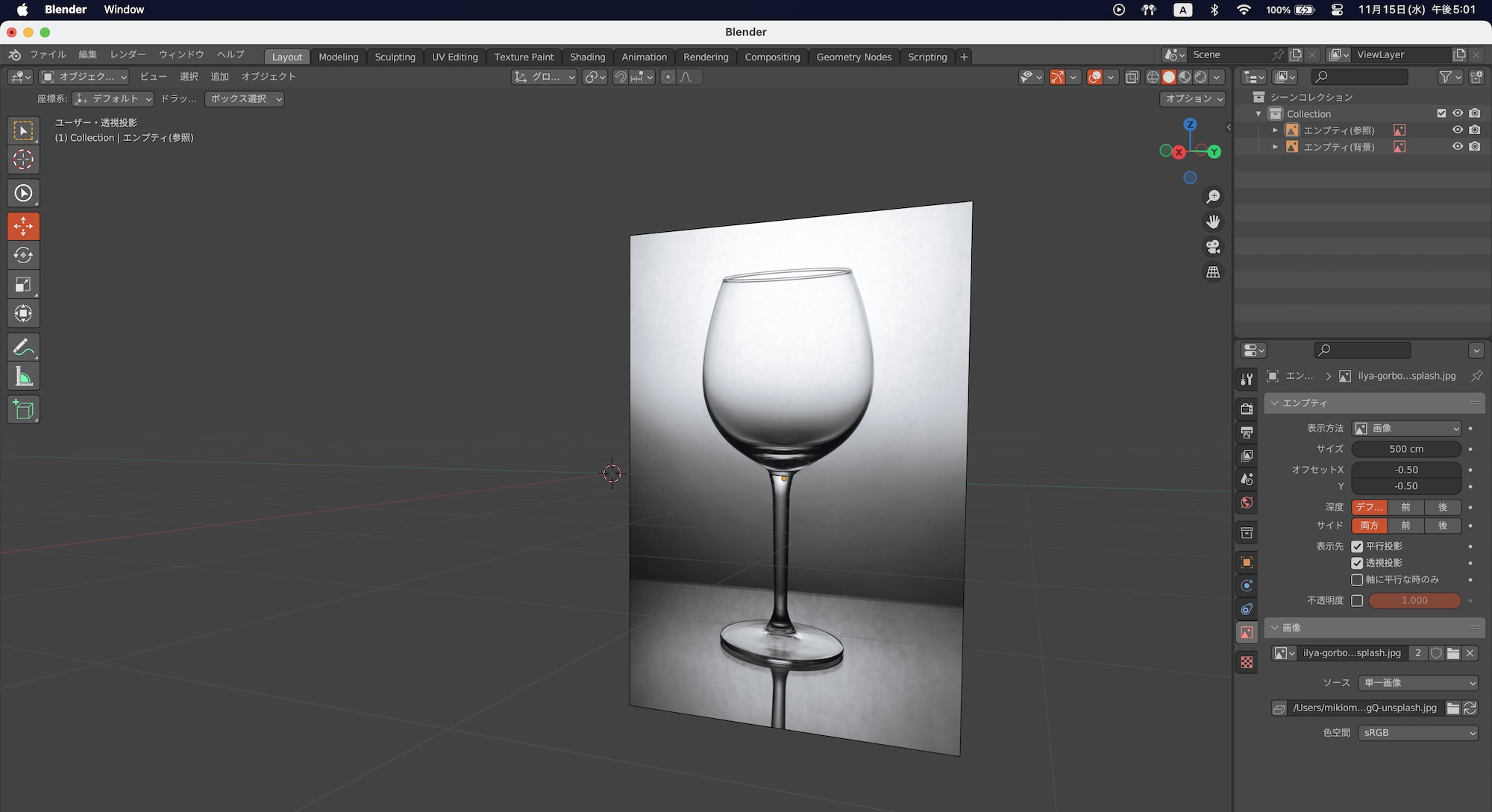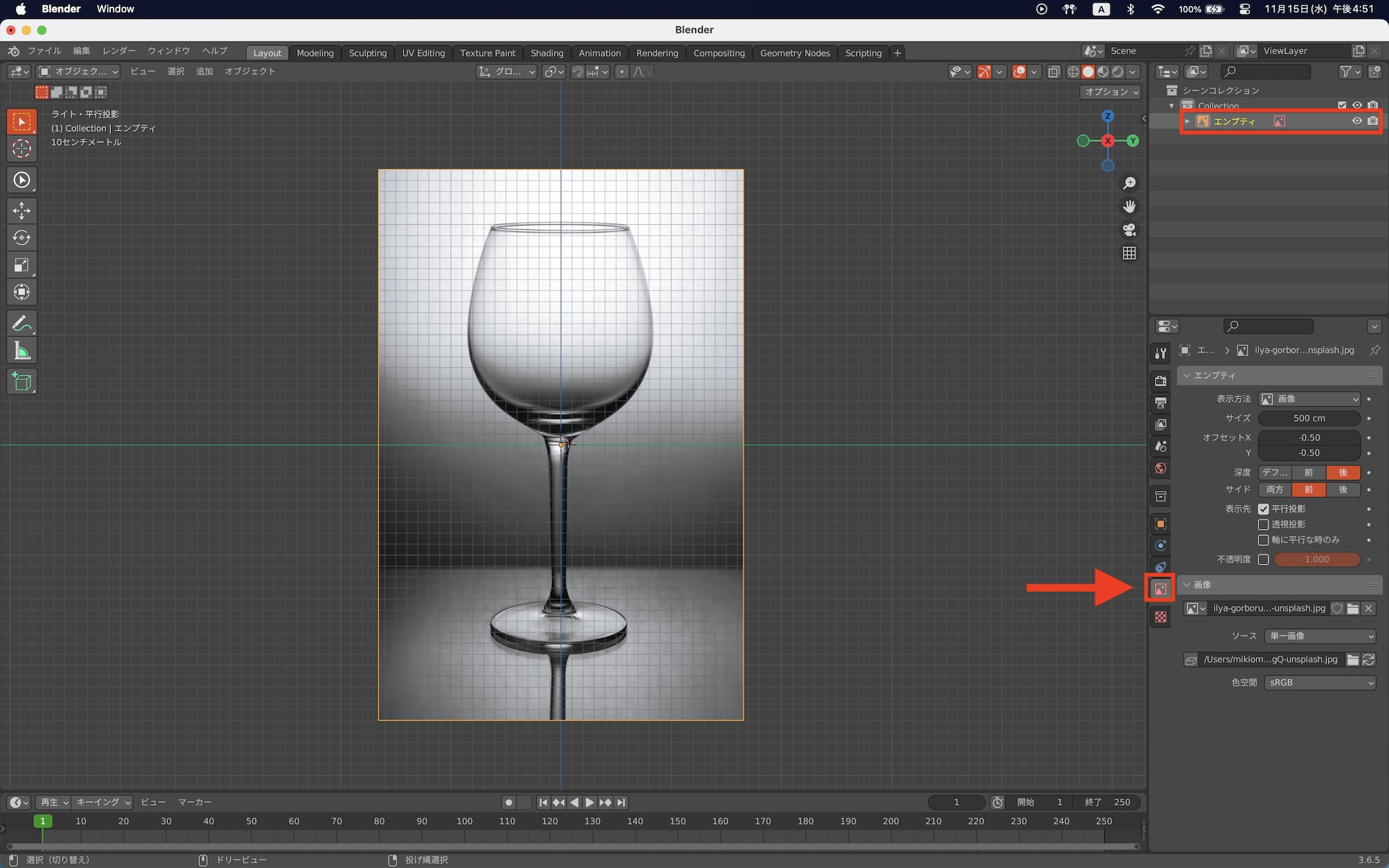 画像は「エンプティ」のオブジェクトとしてビューポートに追加されます。