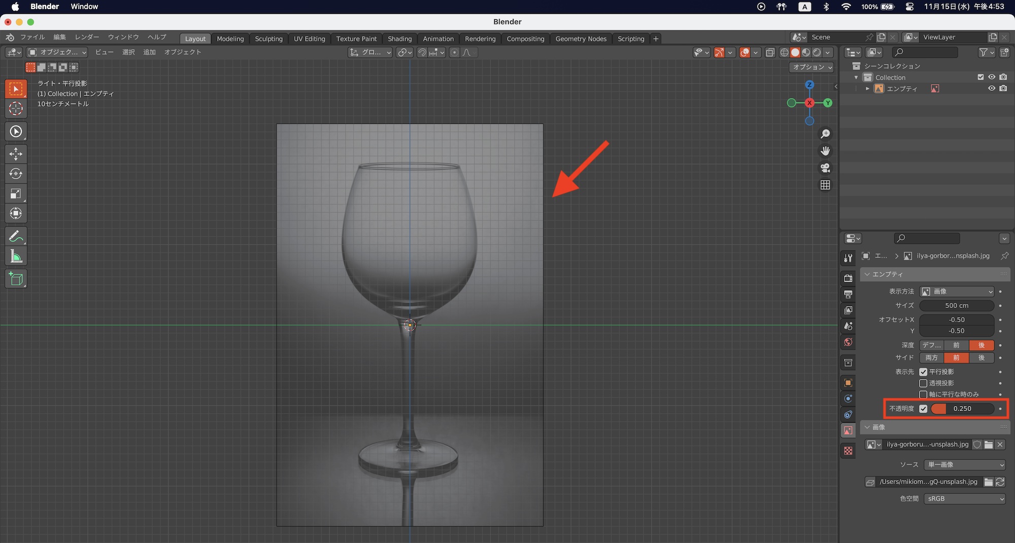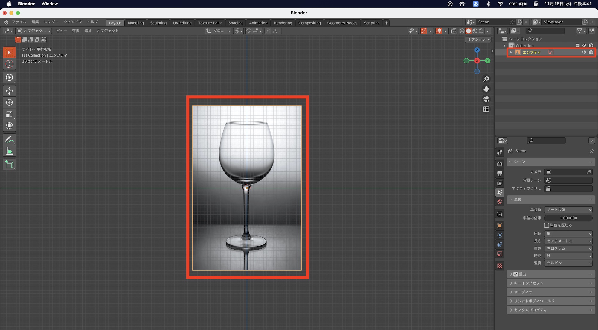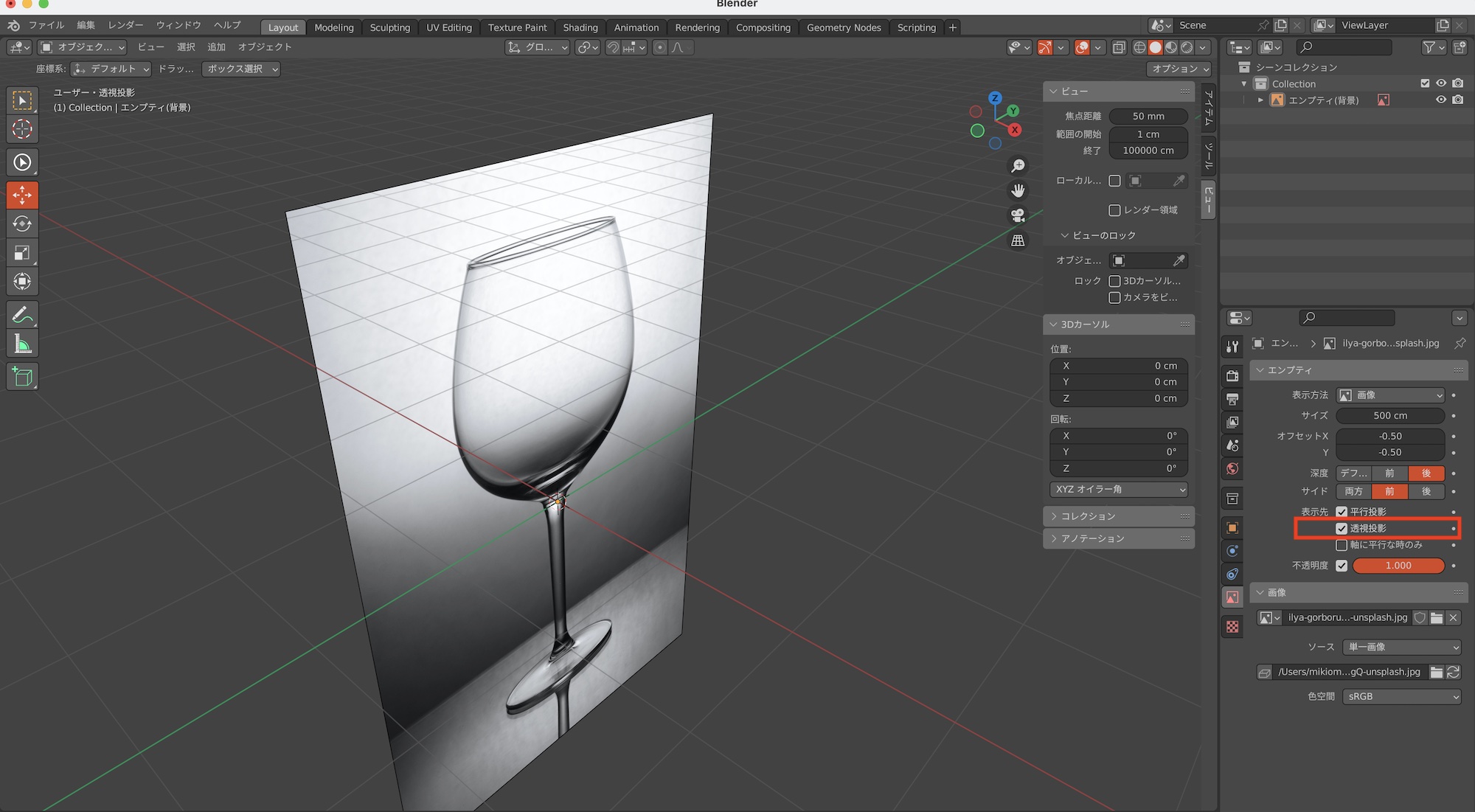 画像は「エンプティ」のオブジェクトとしてビューポートに追加されます。