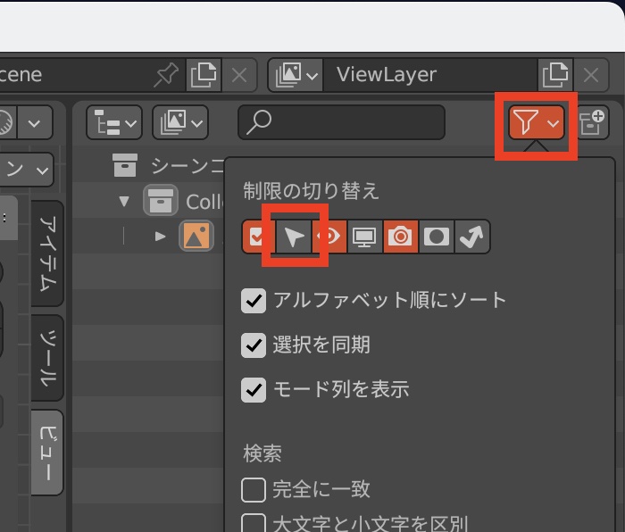 下絵を表示しつつ、操作できない状態にするにはアウトライナーの「フィルター」の項目を開き、「選択可能」のオプションをオンにします。