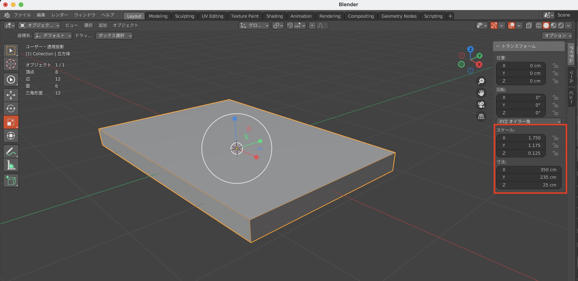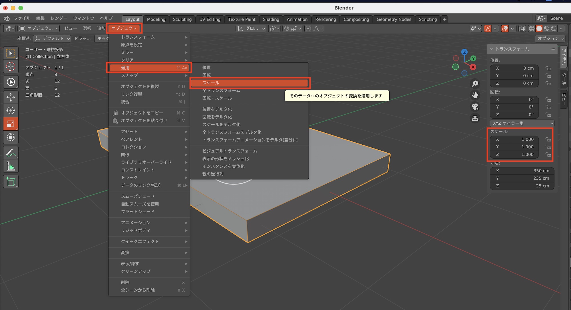 [Blender] オブジェクトのスケールなどを変更したあとは適用してリセットを行おう