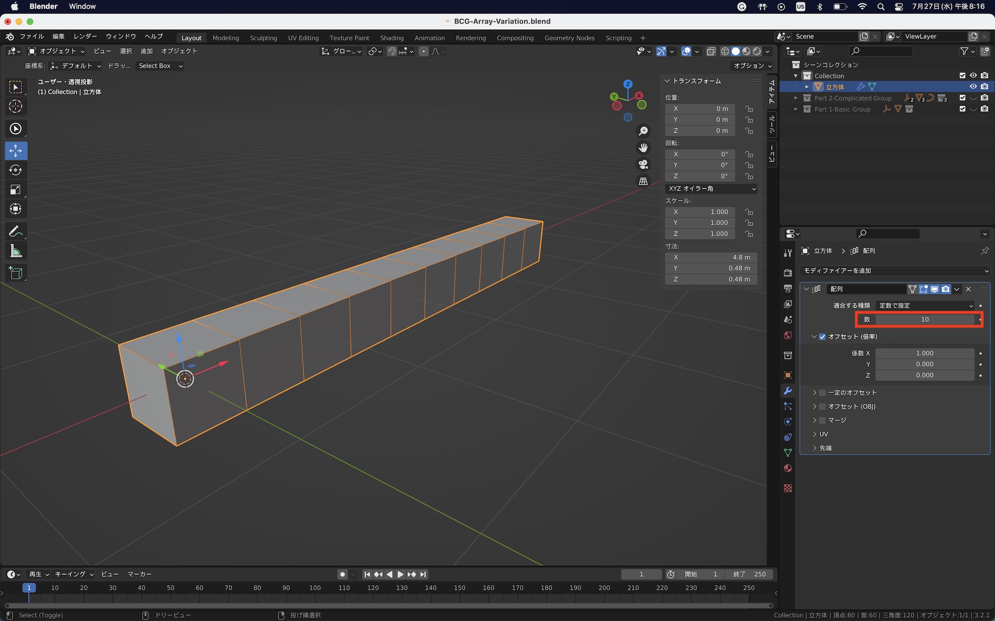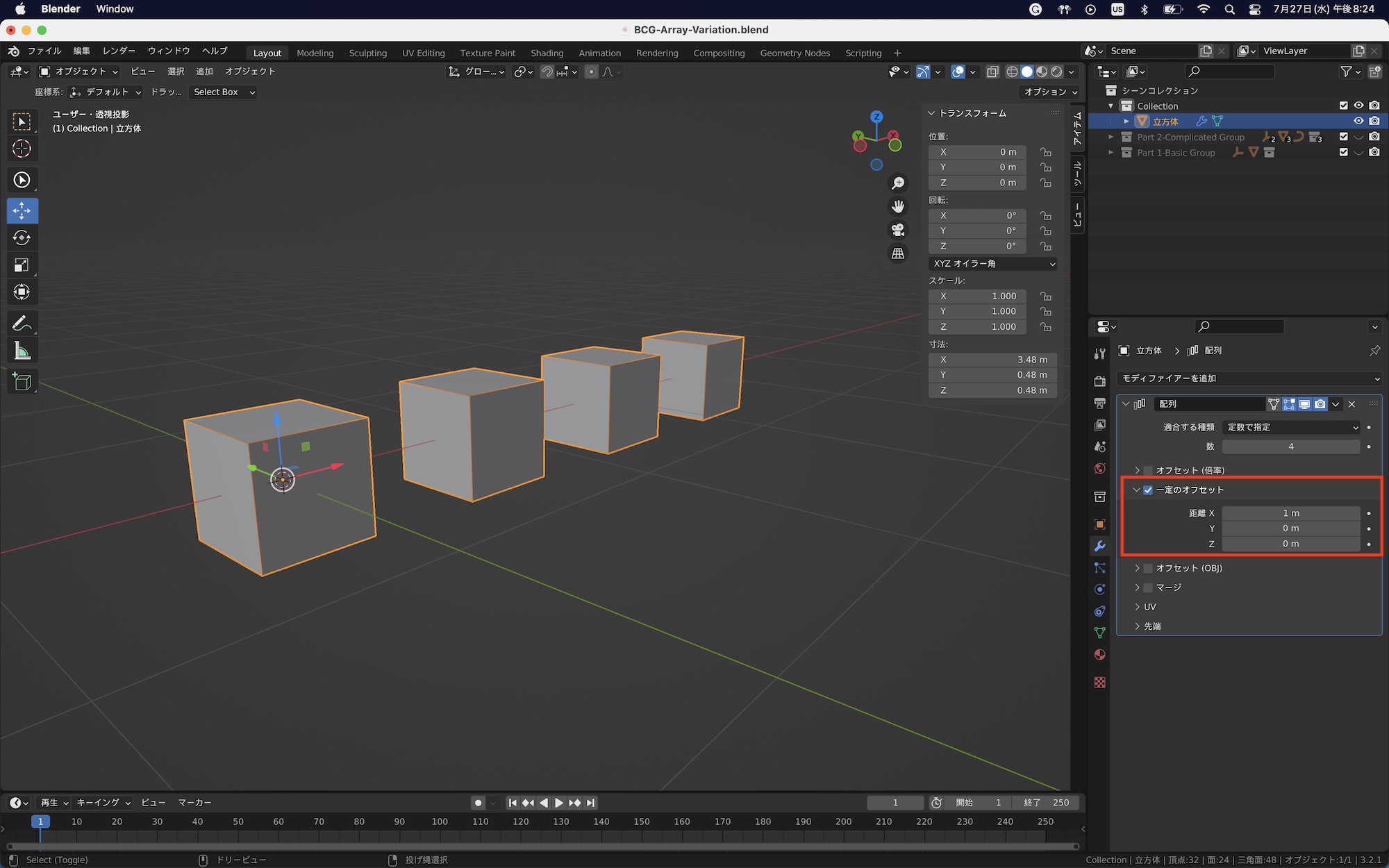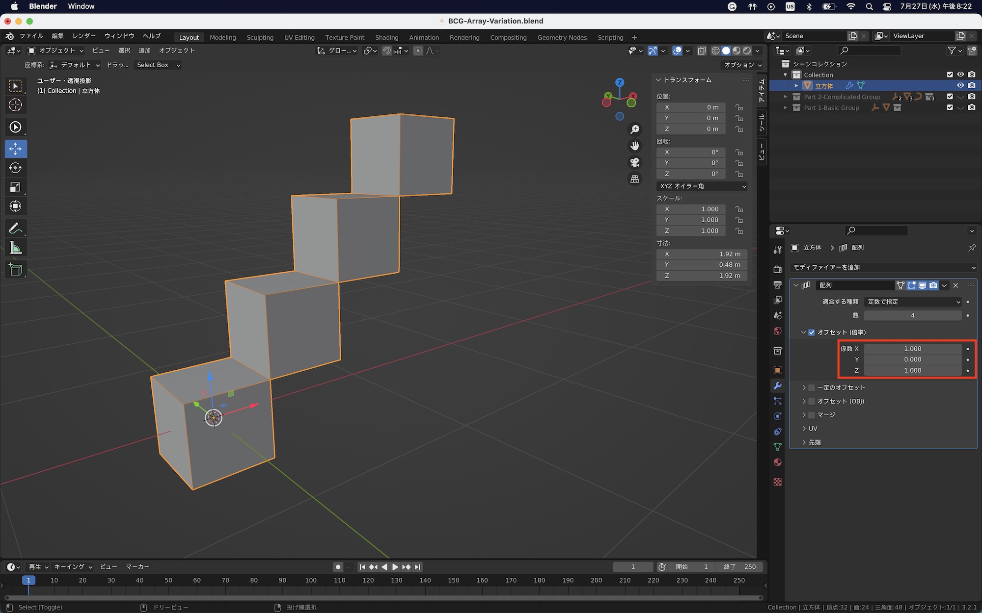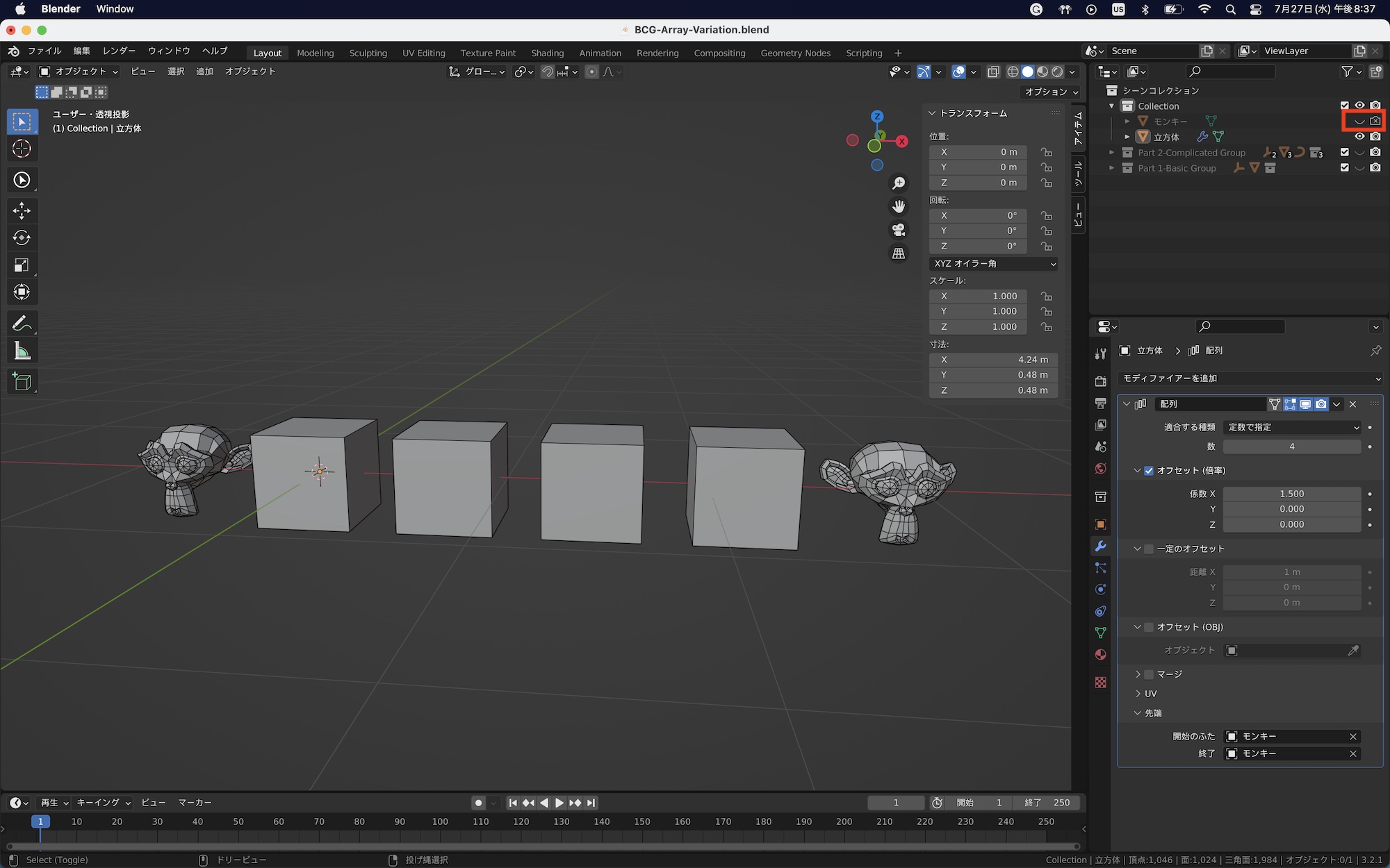 [Blender] 配列(Array)モディファイアーを使って、オブジェクトを増やしてみよう!