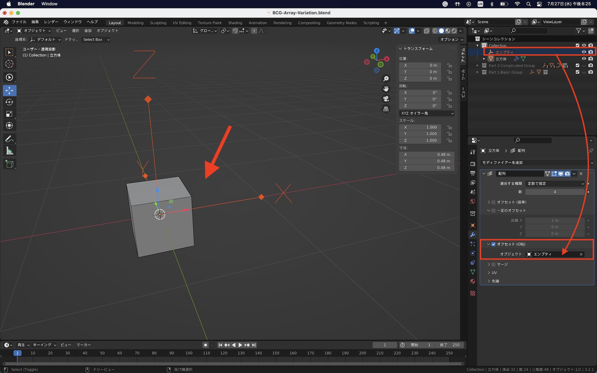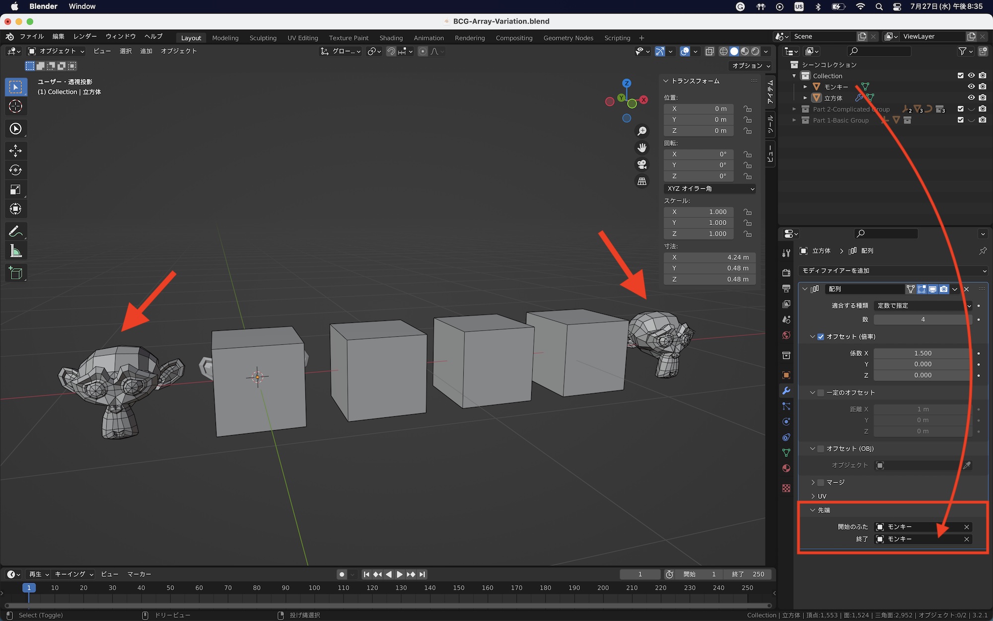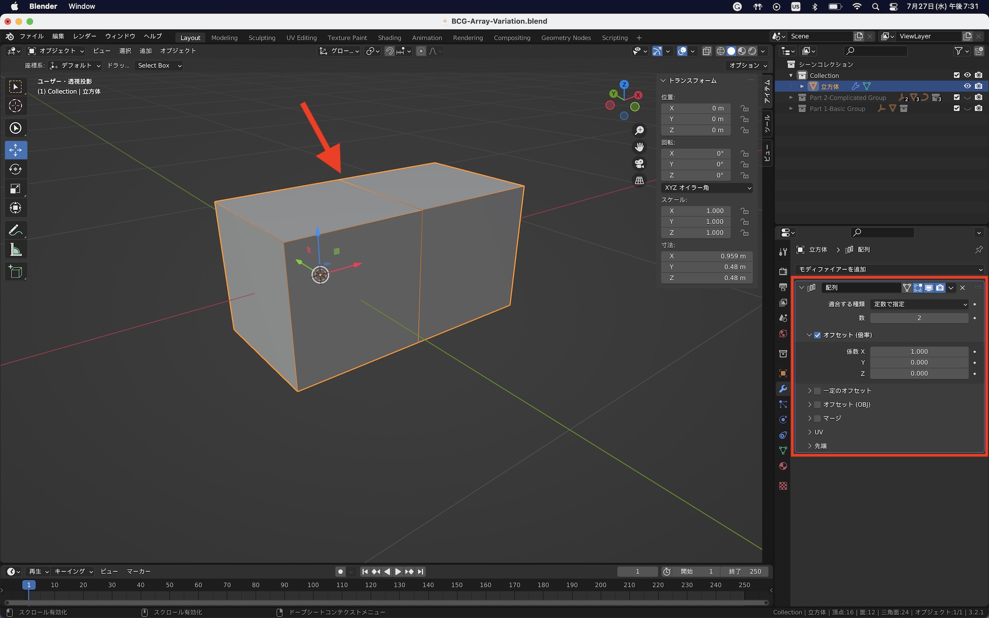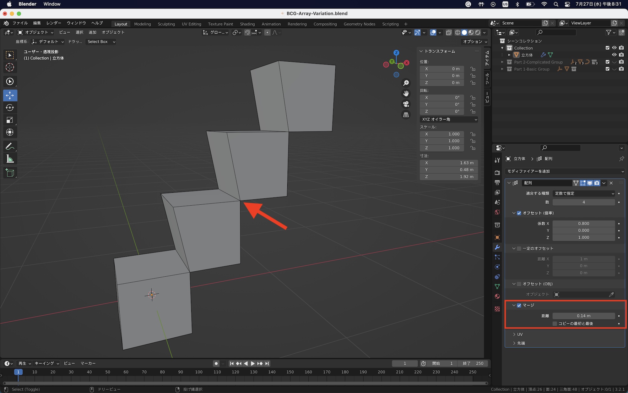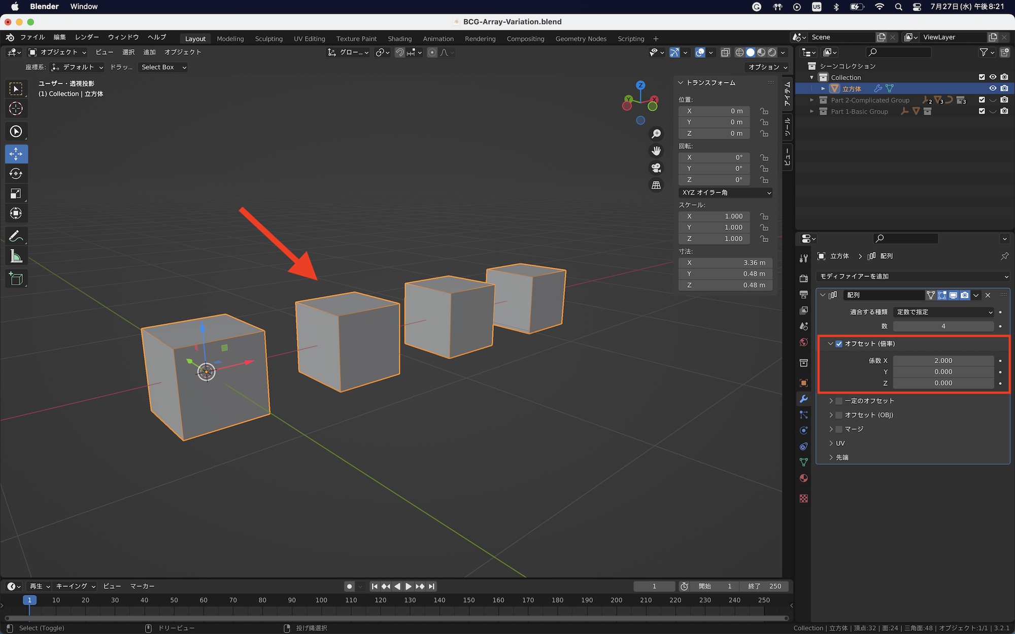 [Blender] 配列(Array)モディファイアーを使って、オブジェクトを増やしてみよう!