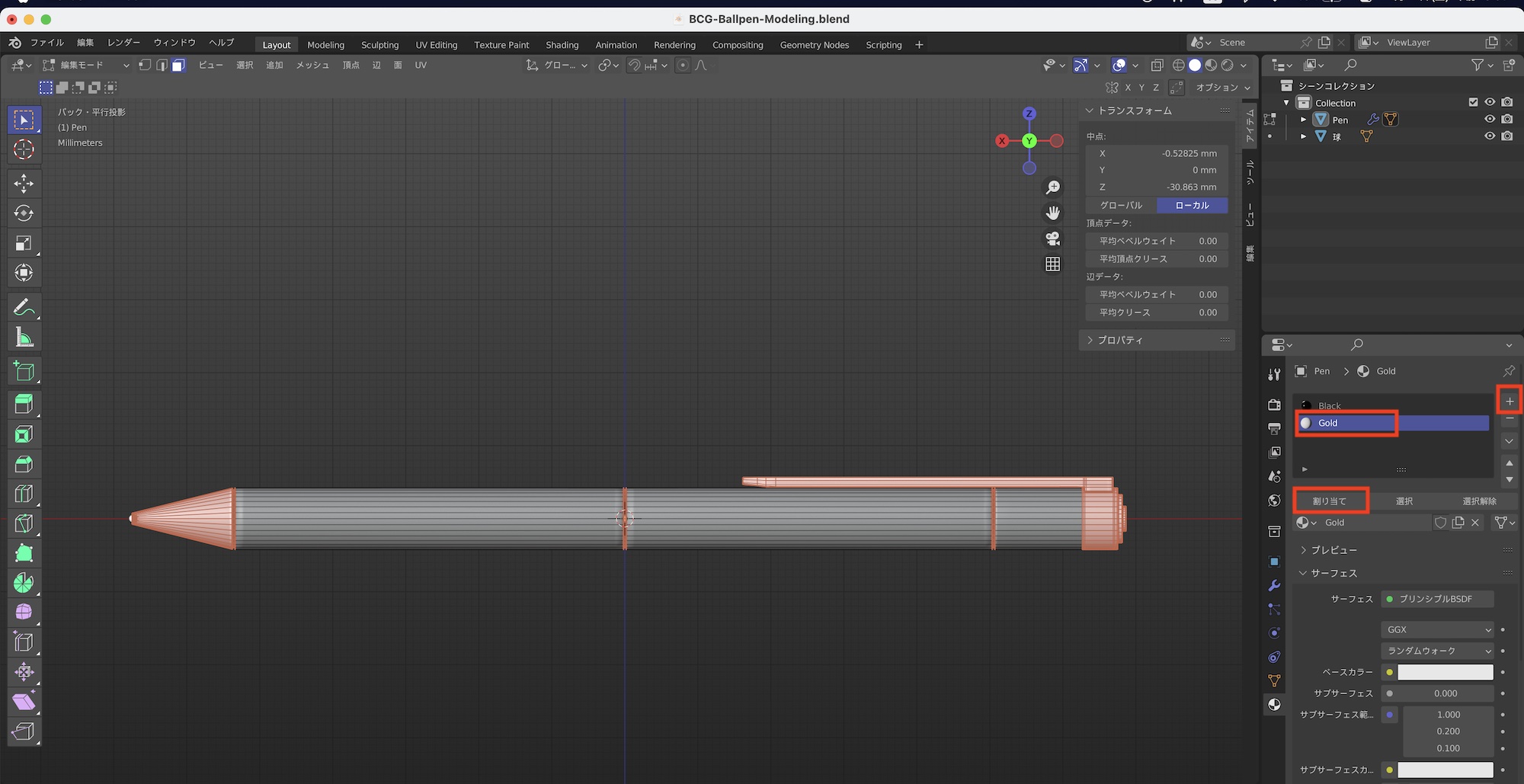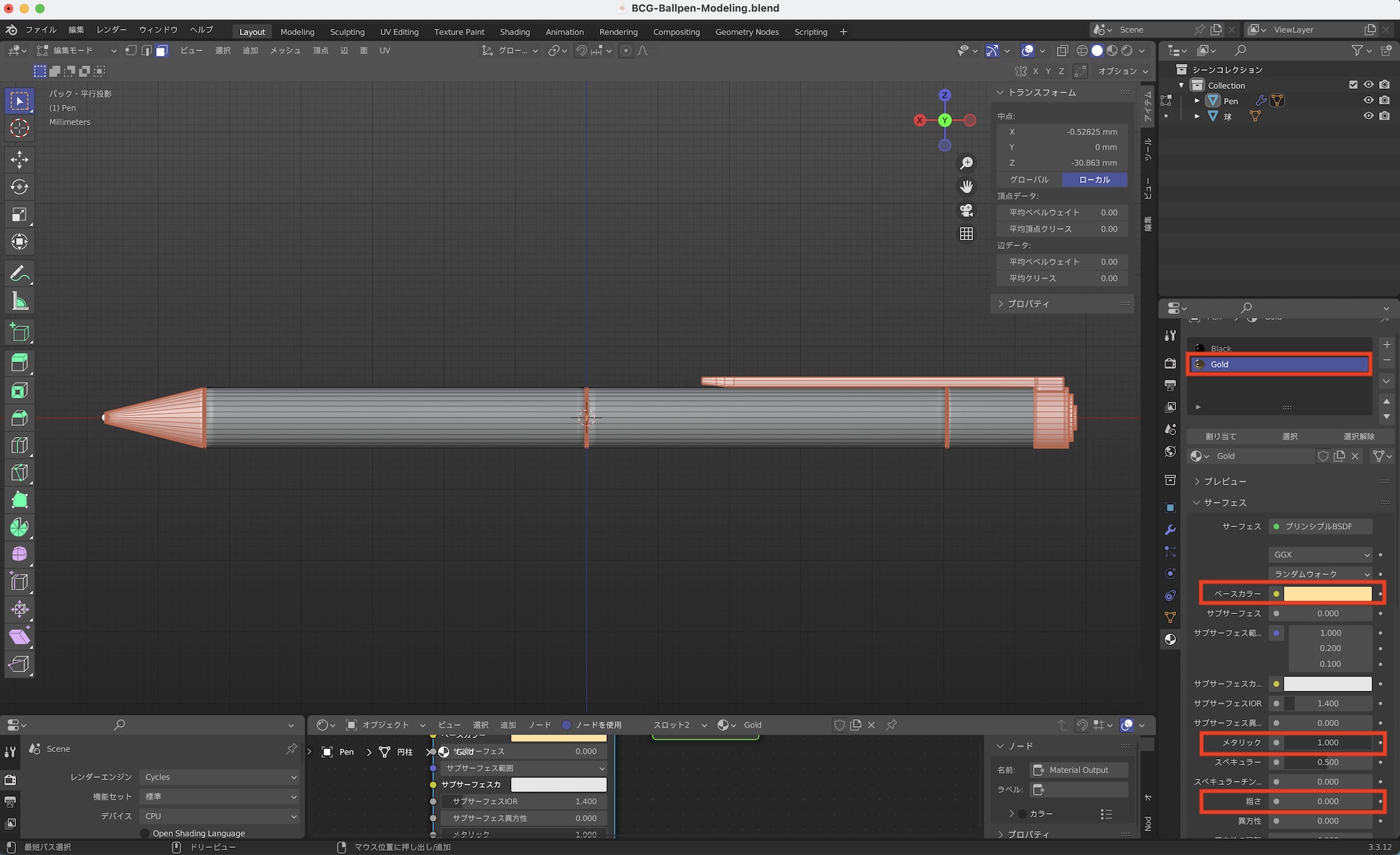[アセット制作] Blenderで高級ボールペンをモデリングしてみよう!その2