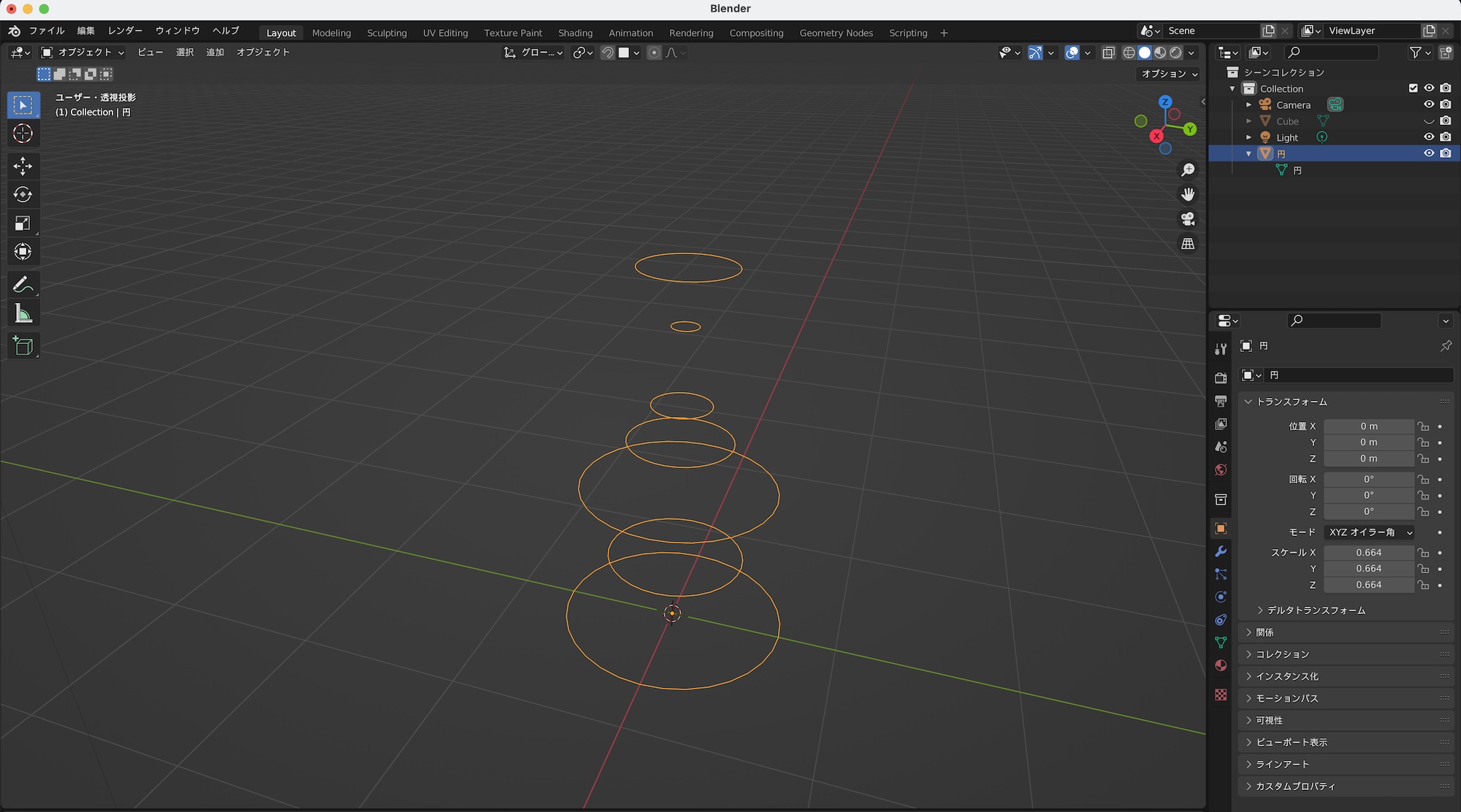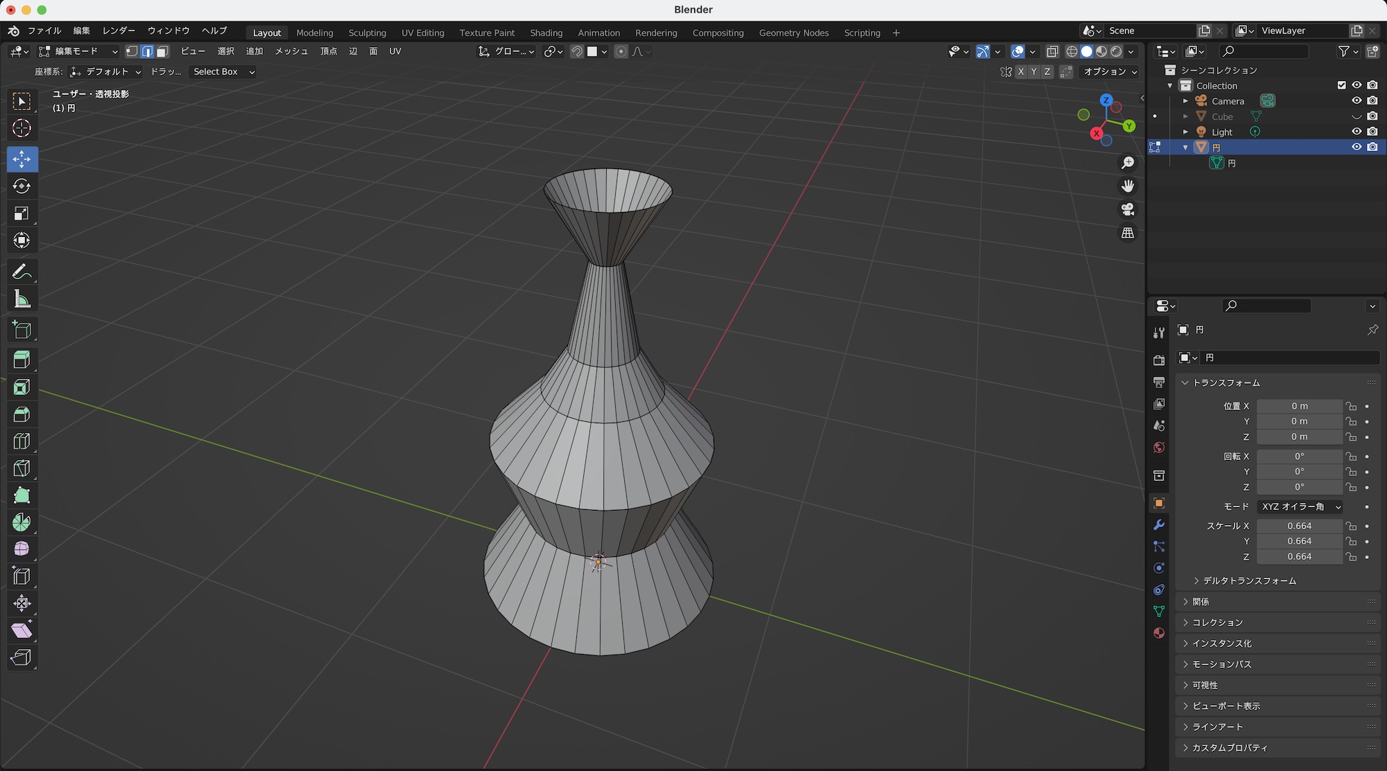 さらに円など、面が無いオブジェクトに適用することも可能で、円を複製してスケールを変更したものに辺ループのブリッジを適用すれば下のようなオブジェクト作れます。壺や瓶などのモデリングに最適なのでおすすめです。