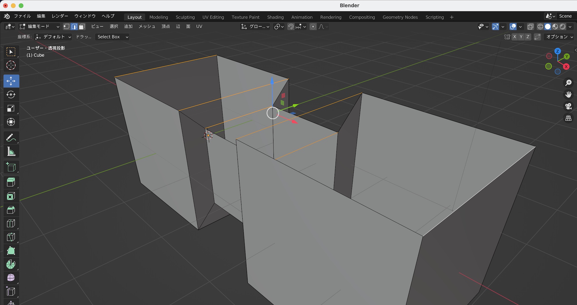 辺ループのブリッジは複数の辺(エッジ)を選択して、その辺をベースに面でブリッジするツールです。間違って面を削除してしまったり、新しく面を作成したい時などに便利なツールです。