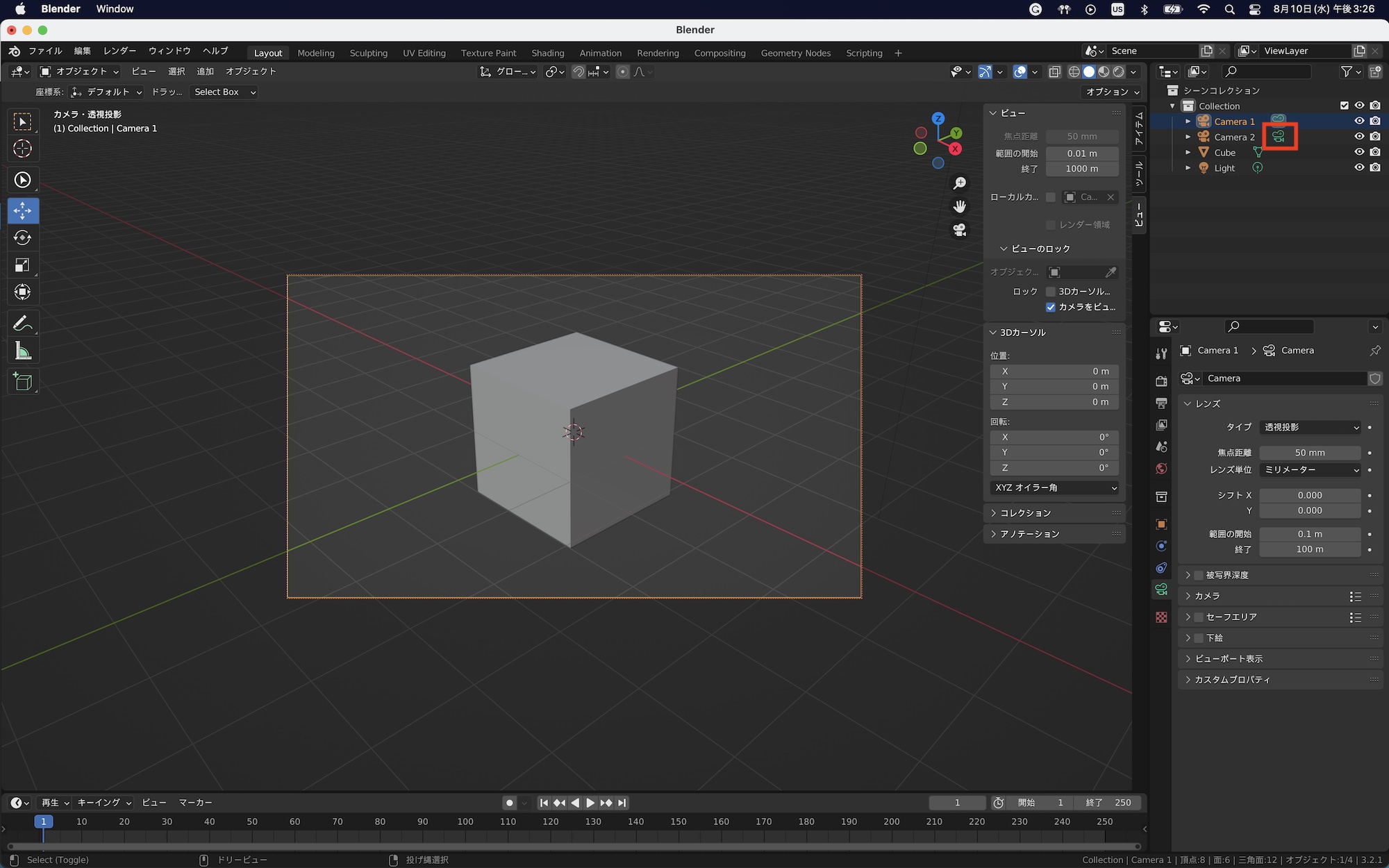 Blenderのカメラオブジェクト
