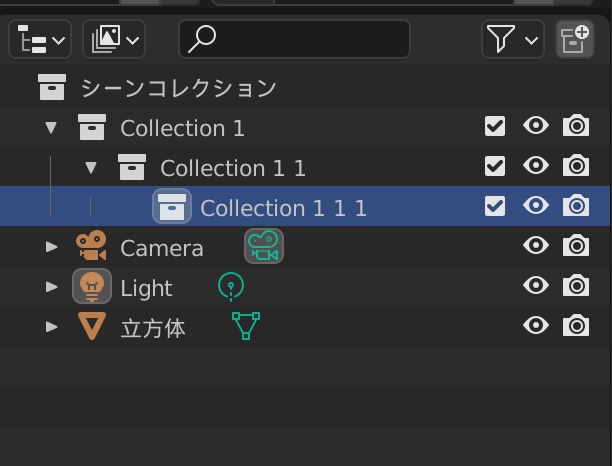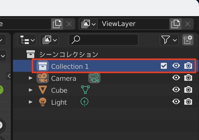 コレクションは削除したくないけれど、ビューポートから非表示にしたい場合はコレクションの右側にあるチェックボックスをクリックします。