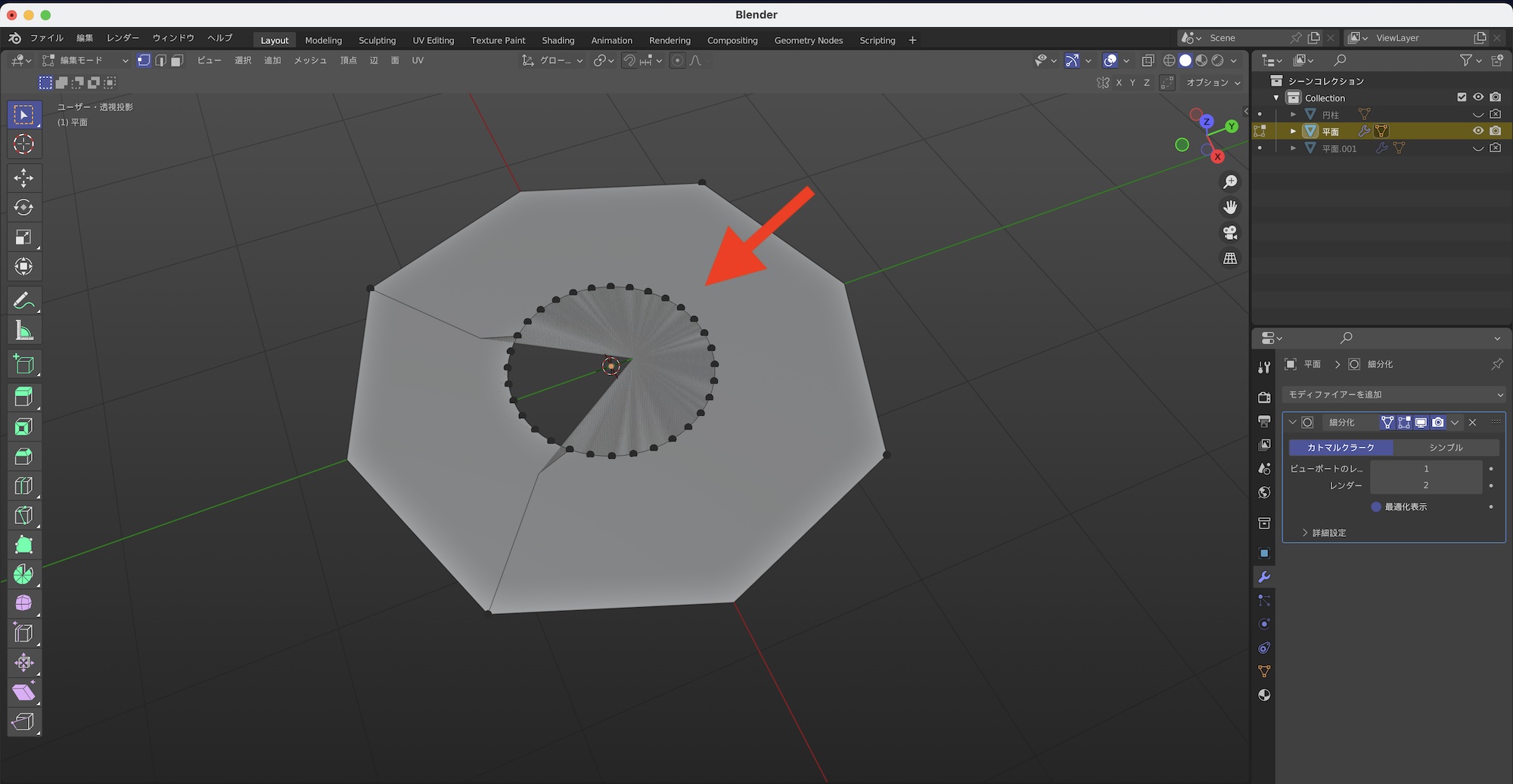 [Blender] 面の表面に円(穴)を追加する、おすすめな3つの方法