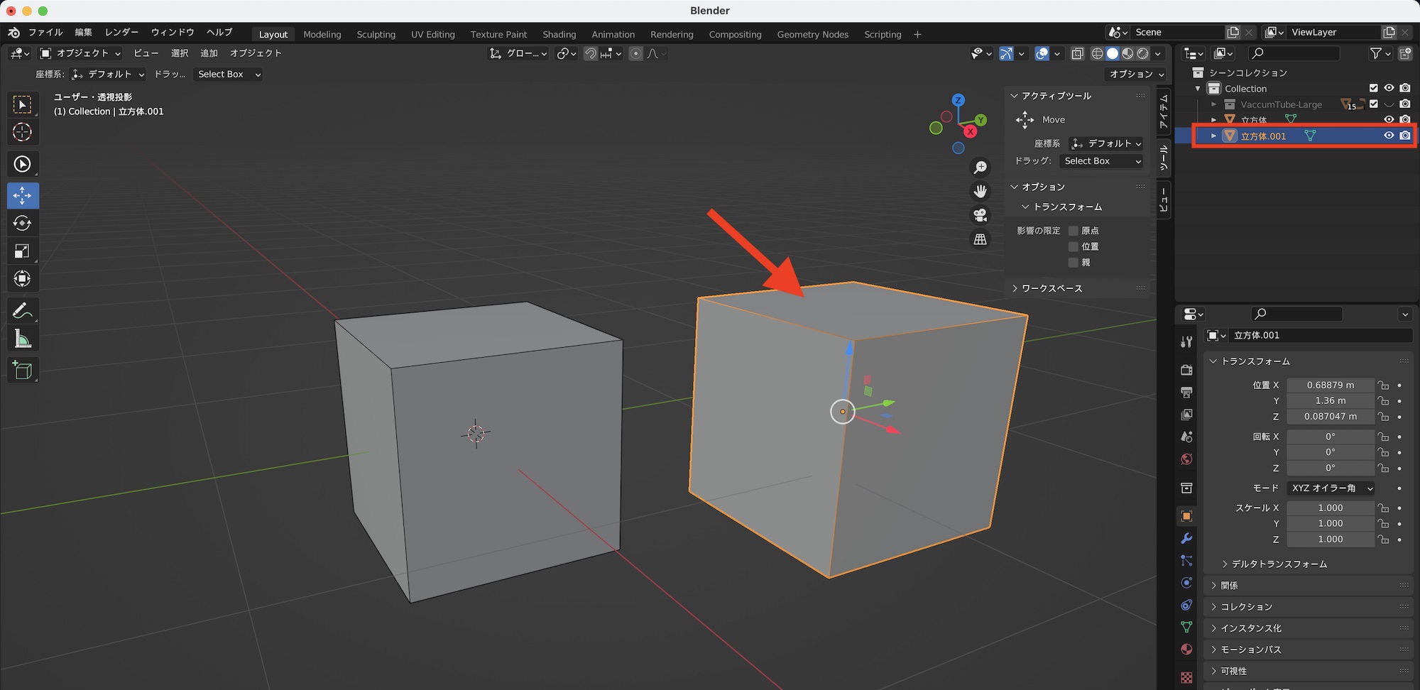 複製されたコレクションは選択されていない状態なので、コレクションの中にある全てのオブジェクトを選択して移動などを行うと良いでしょう。