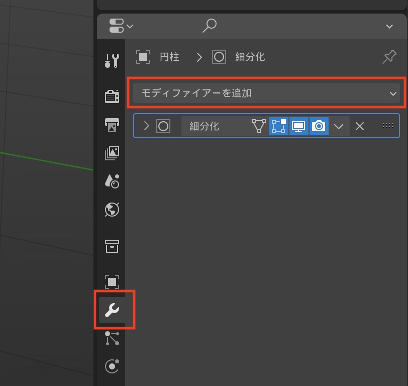 オブジェクトを選択した上で、プロパティの「モディファイアー」から「ラティス」を選択します。