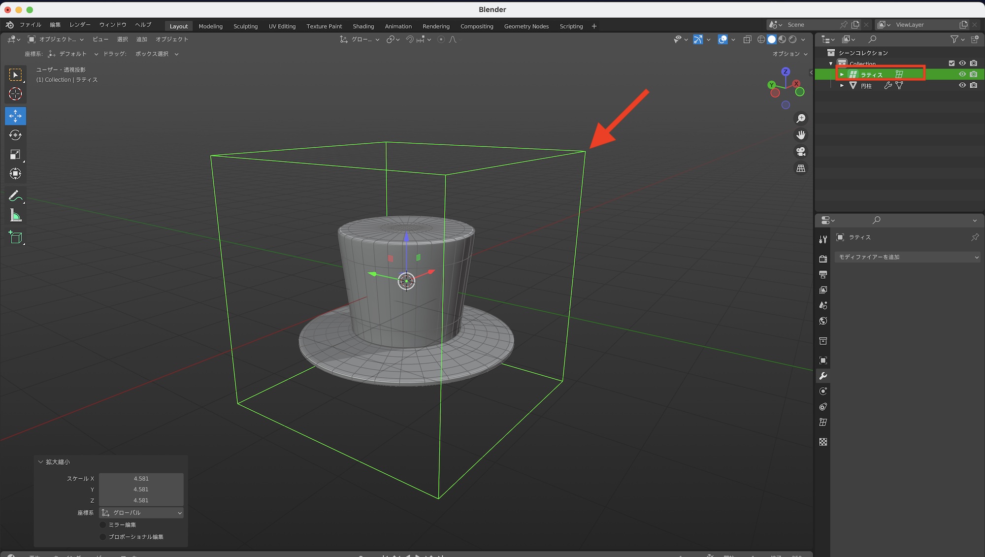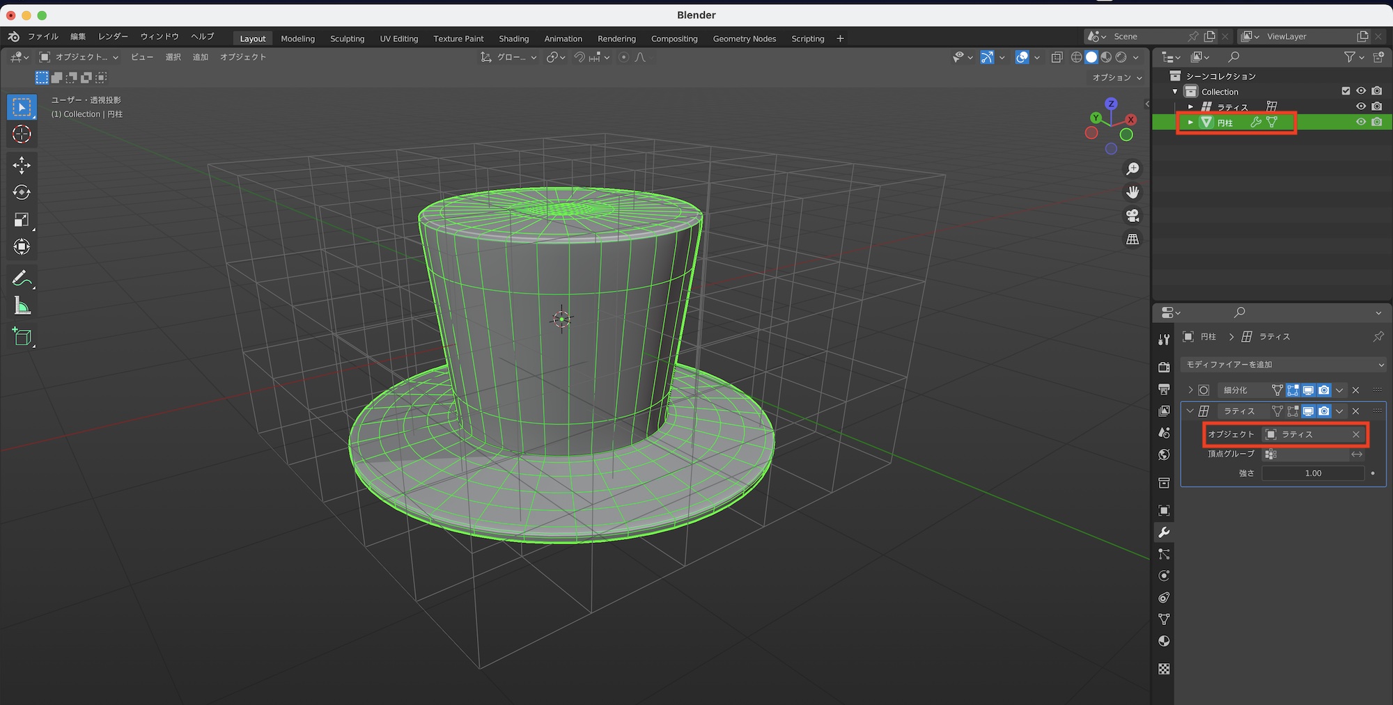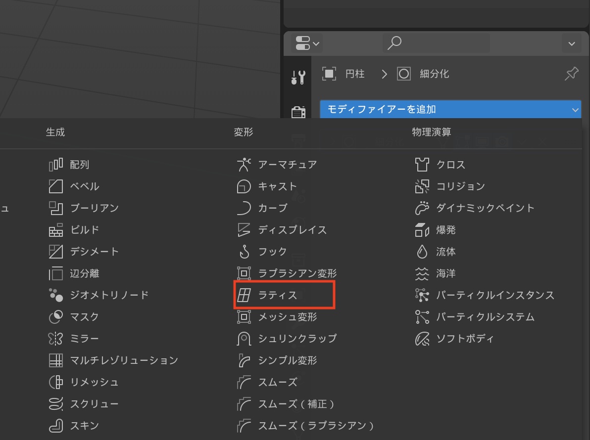 ラティスモディファイアーを追加する