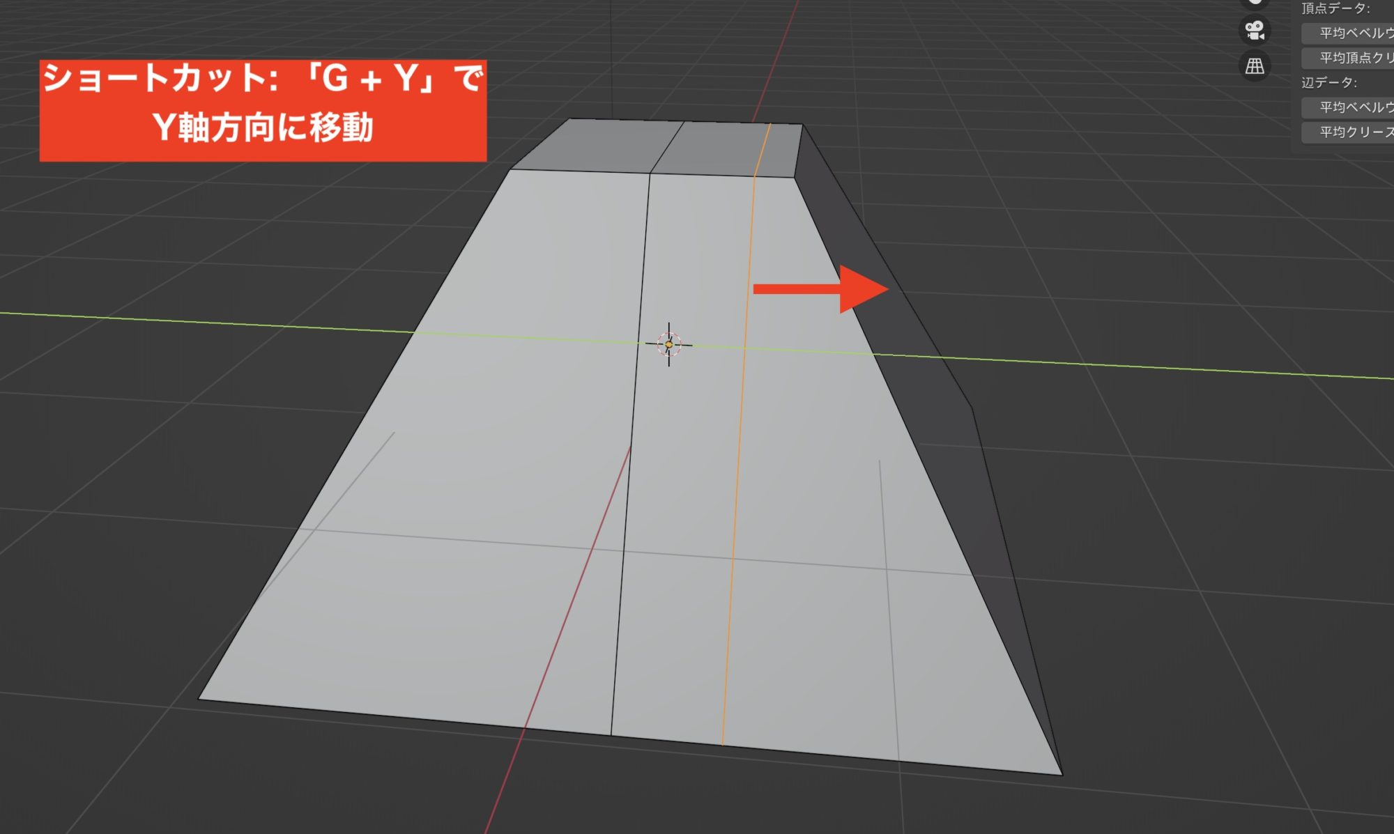 ループカットした辺が選択された状態で、位置のショートカットキー「G」と、「Y」など動かしたい軸を指定してスライドすれば直線のループカットが完成します。