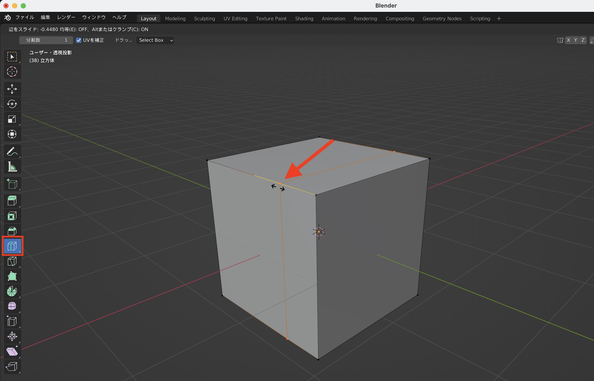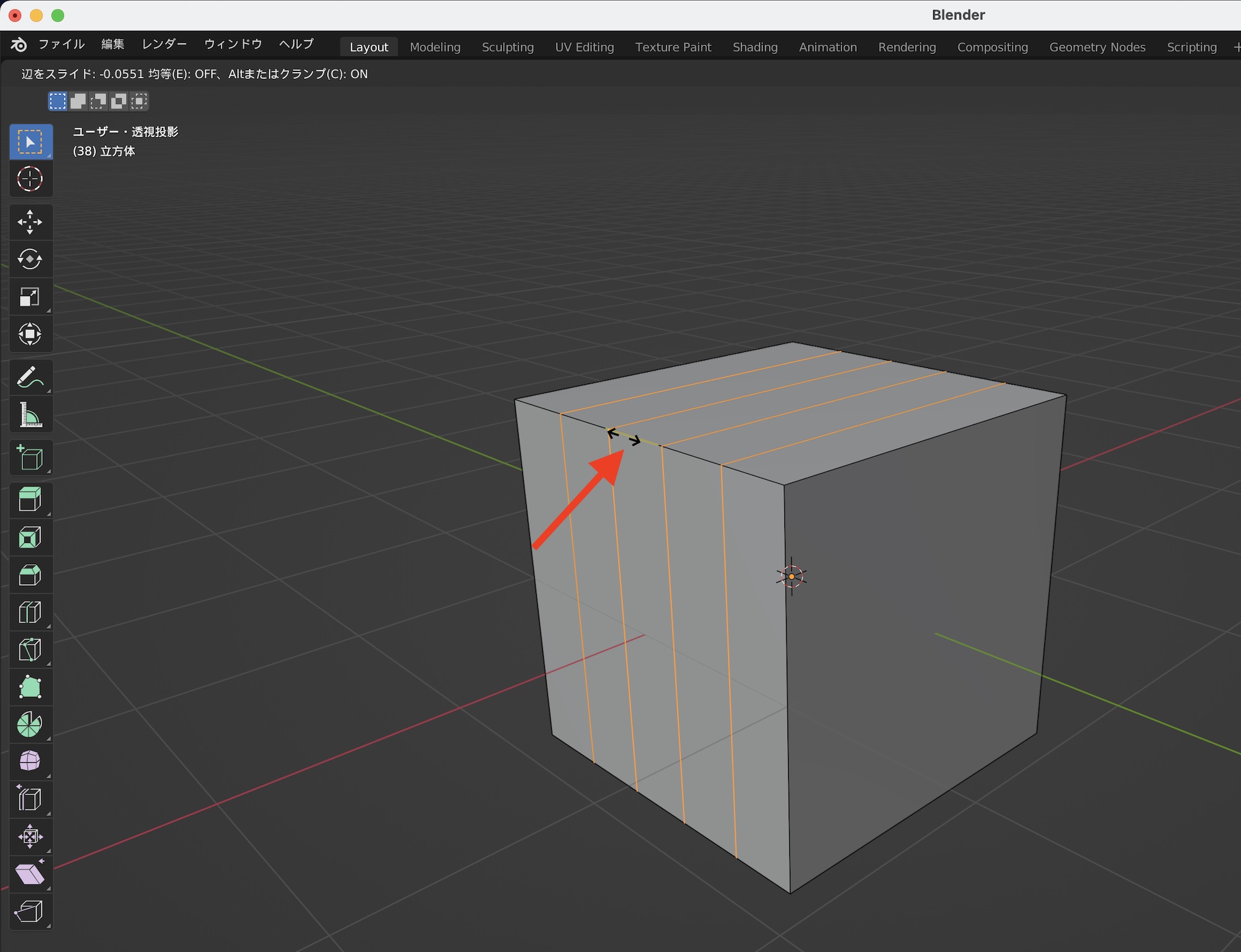 クリックを行うとスライドになるので、スライドしながら位置を確定するか、もう一度クリックしてループカットを完了させると良いでしょう。