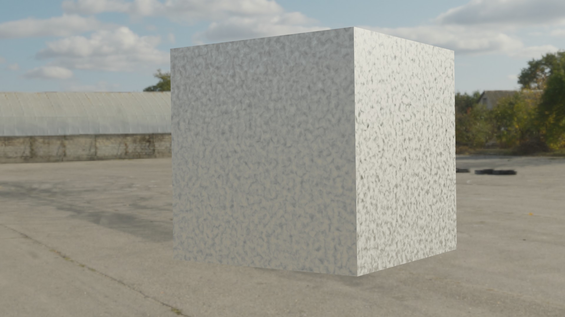 そこで、先ほど追加したノイズテクスチャの「係数」をプリンシプルBSDFの「粗さ」に接続してみると、梨地加工やバイブレーション研磨に近い感じの表面になりました。