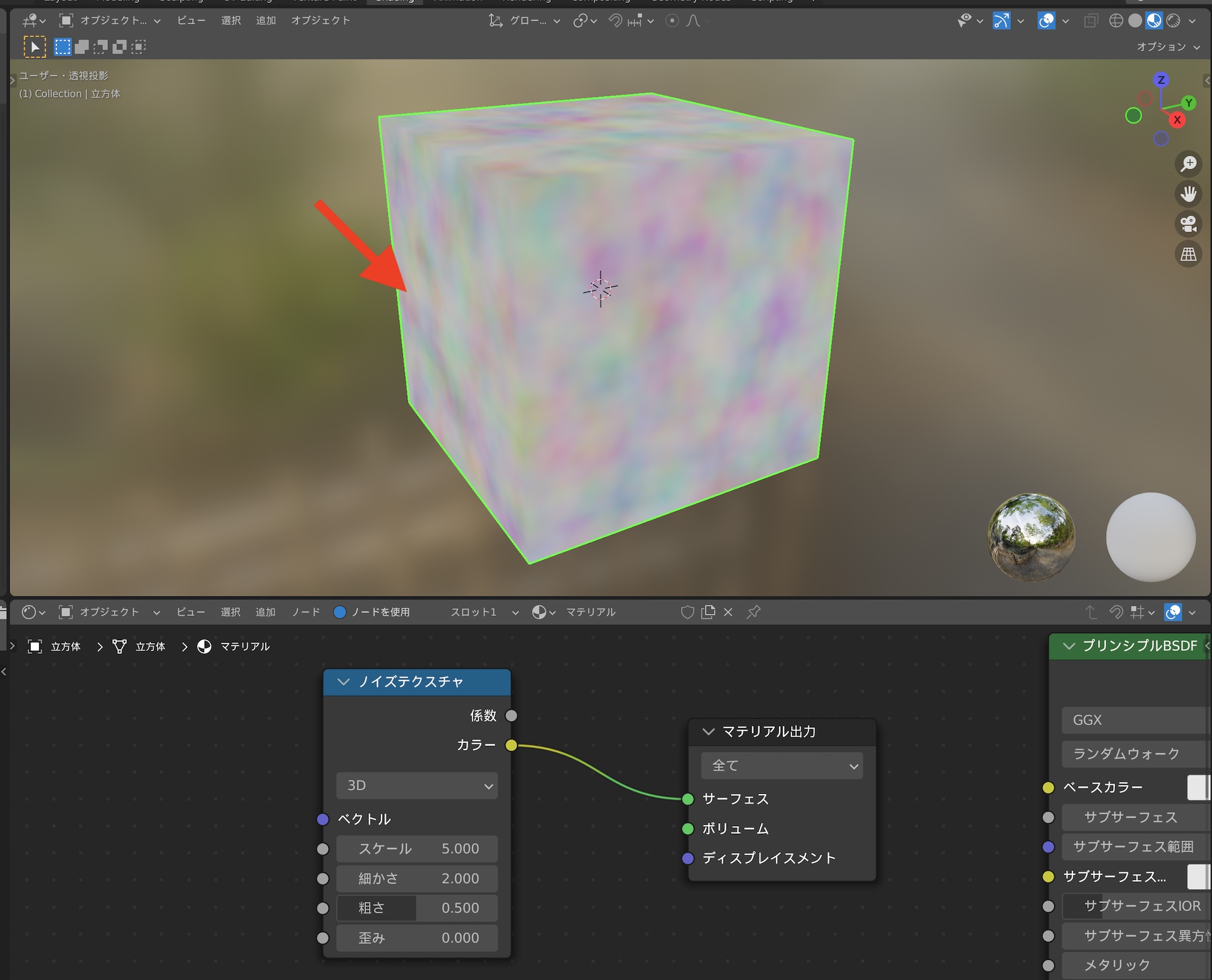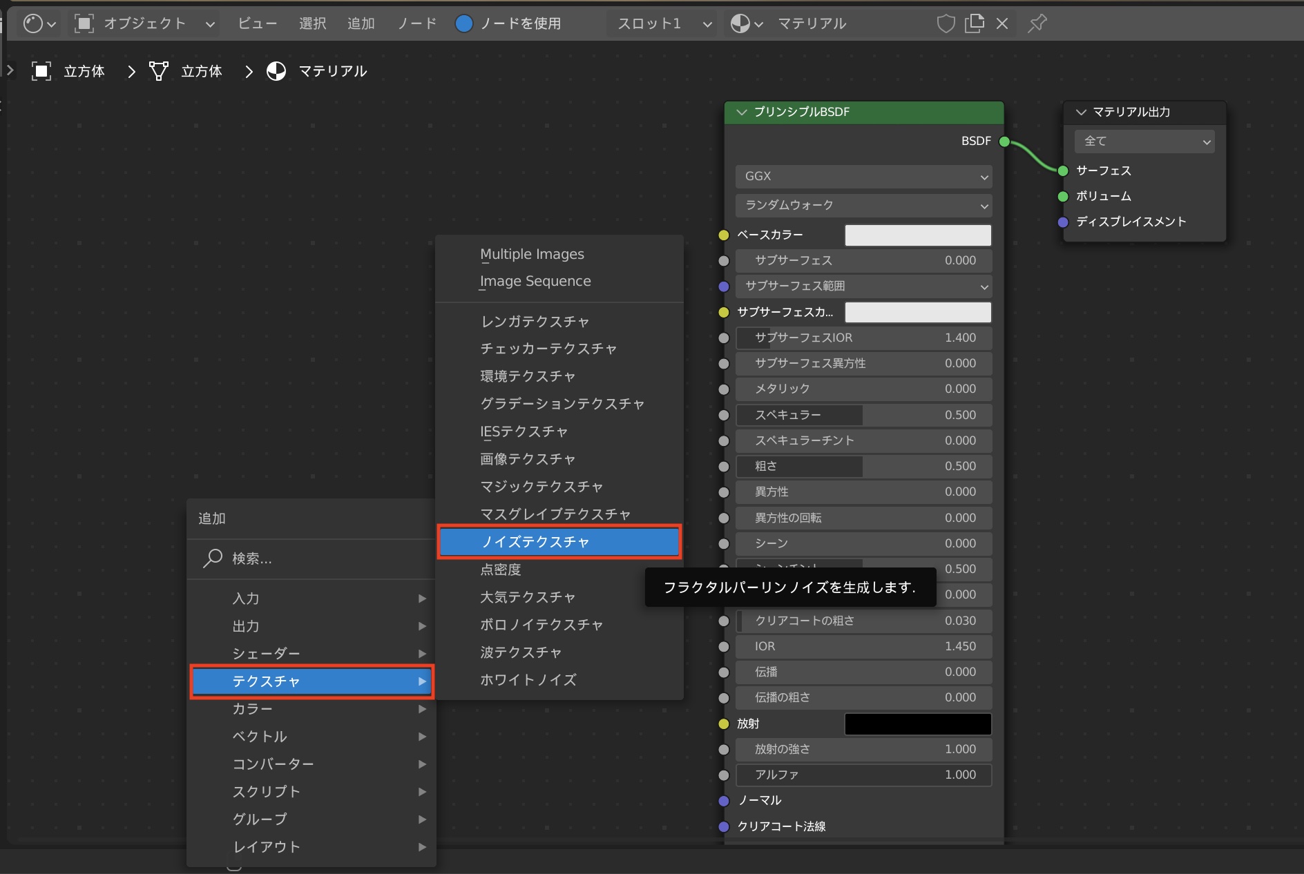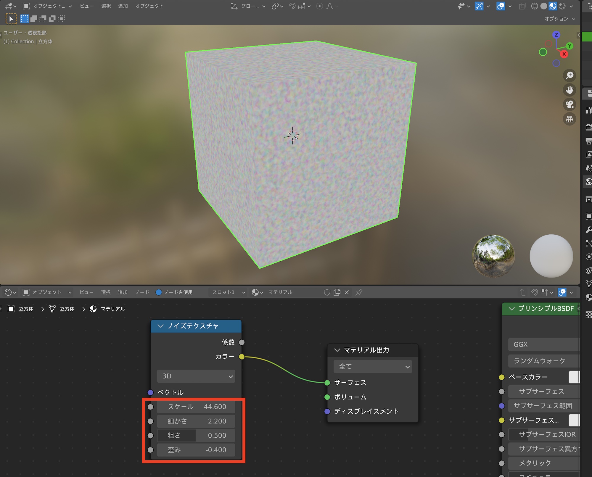 ノイズテクスチャをプリンシプルBSDFと組み合わせる