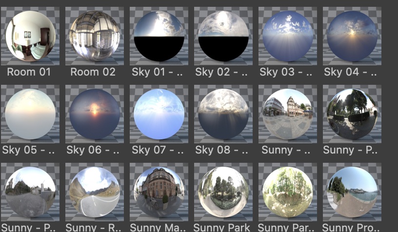 実写と合成する場合は自分で撮影するのが望ましいですが、Cinema 4DにはHDRIのプリセットが用意されているほか、オンラインから入手することも可能なので、必要に応じてHDRIを揃えると良いでしょう。