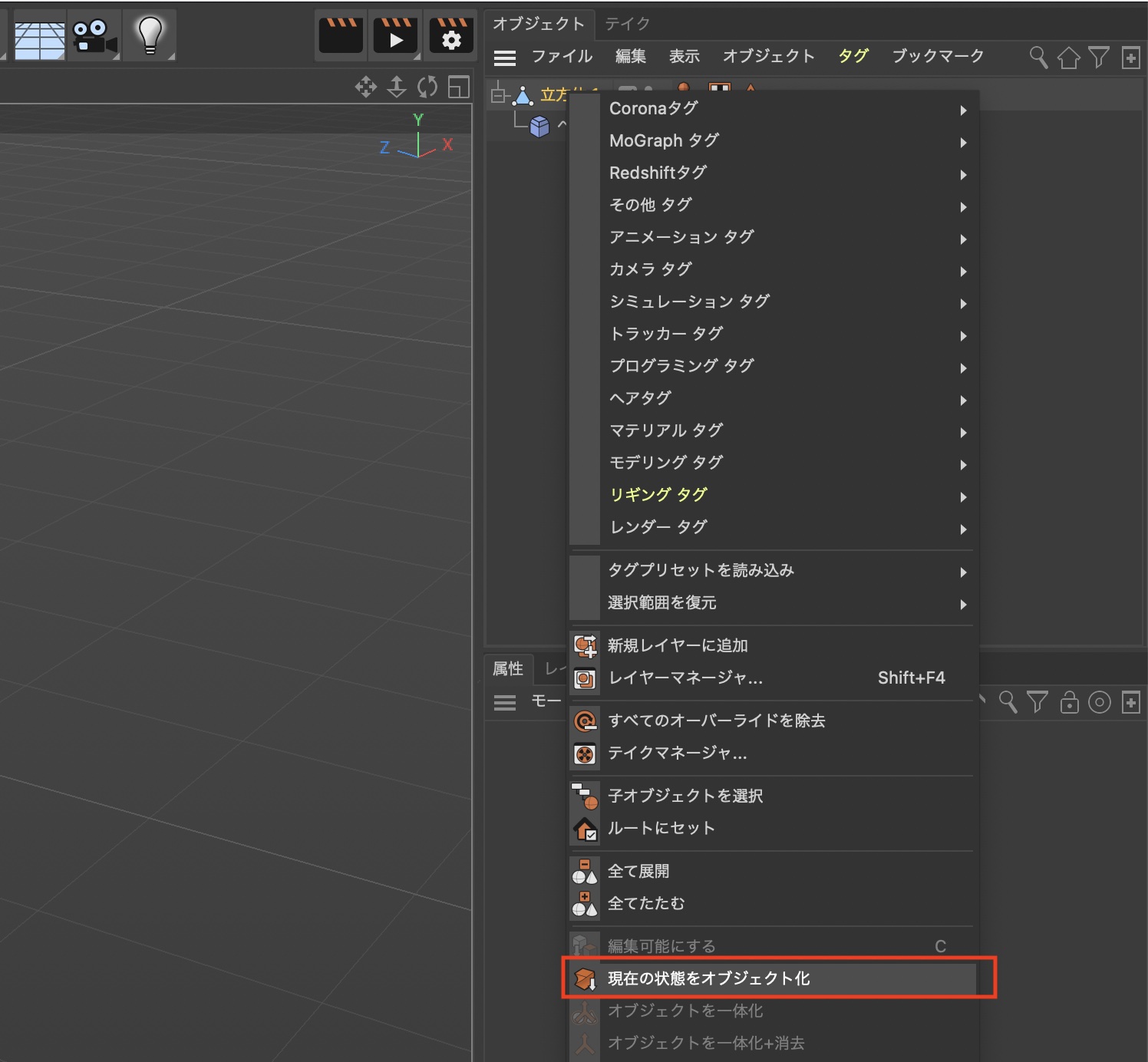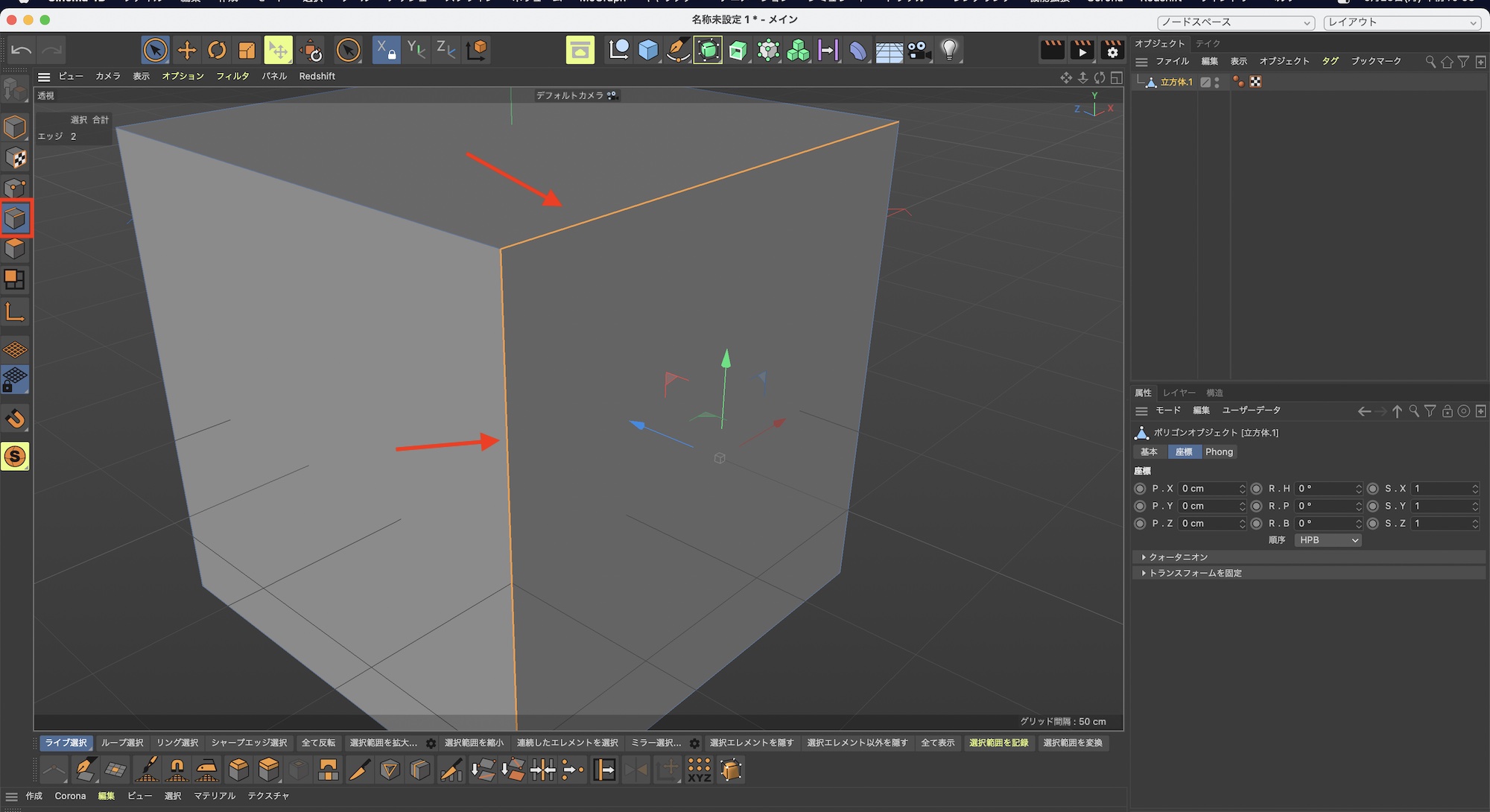 今回は立方体オブジェクトを追加し、オブジェクトを編集可能にします。