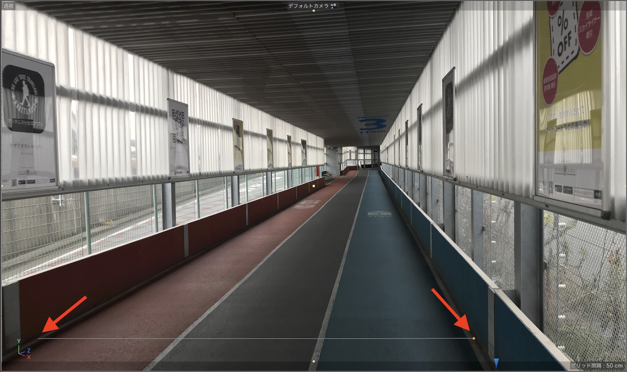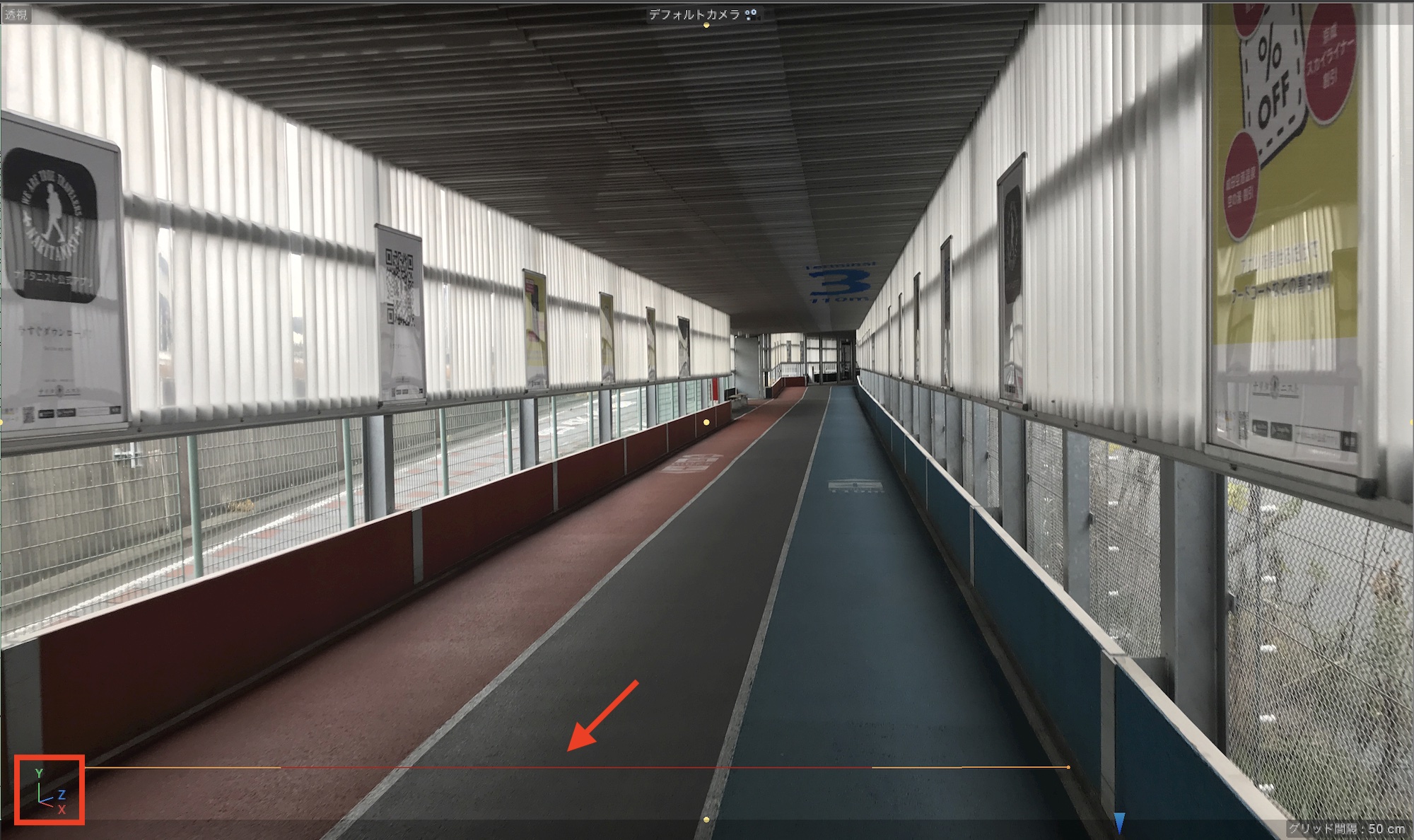 今回筆者が使用した画像は上のような通路のもの。これからXYZ軸のライン(線)を追加していく形になるので、可能な限り奥行きや高さ、横幅が判別やすい画像を選ぶことをおすすめします。