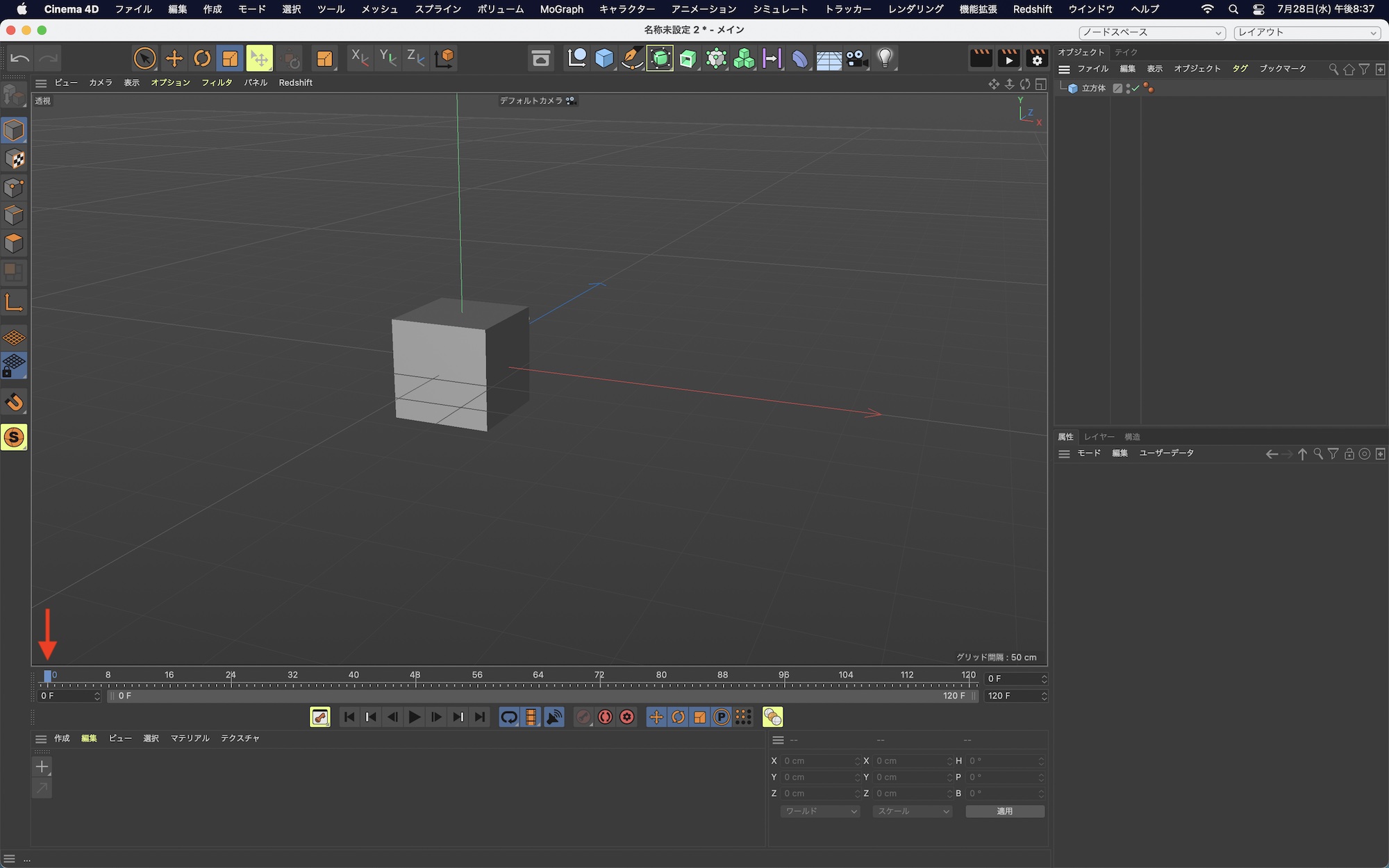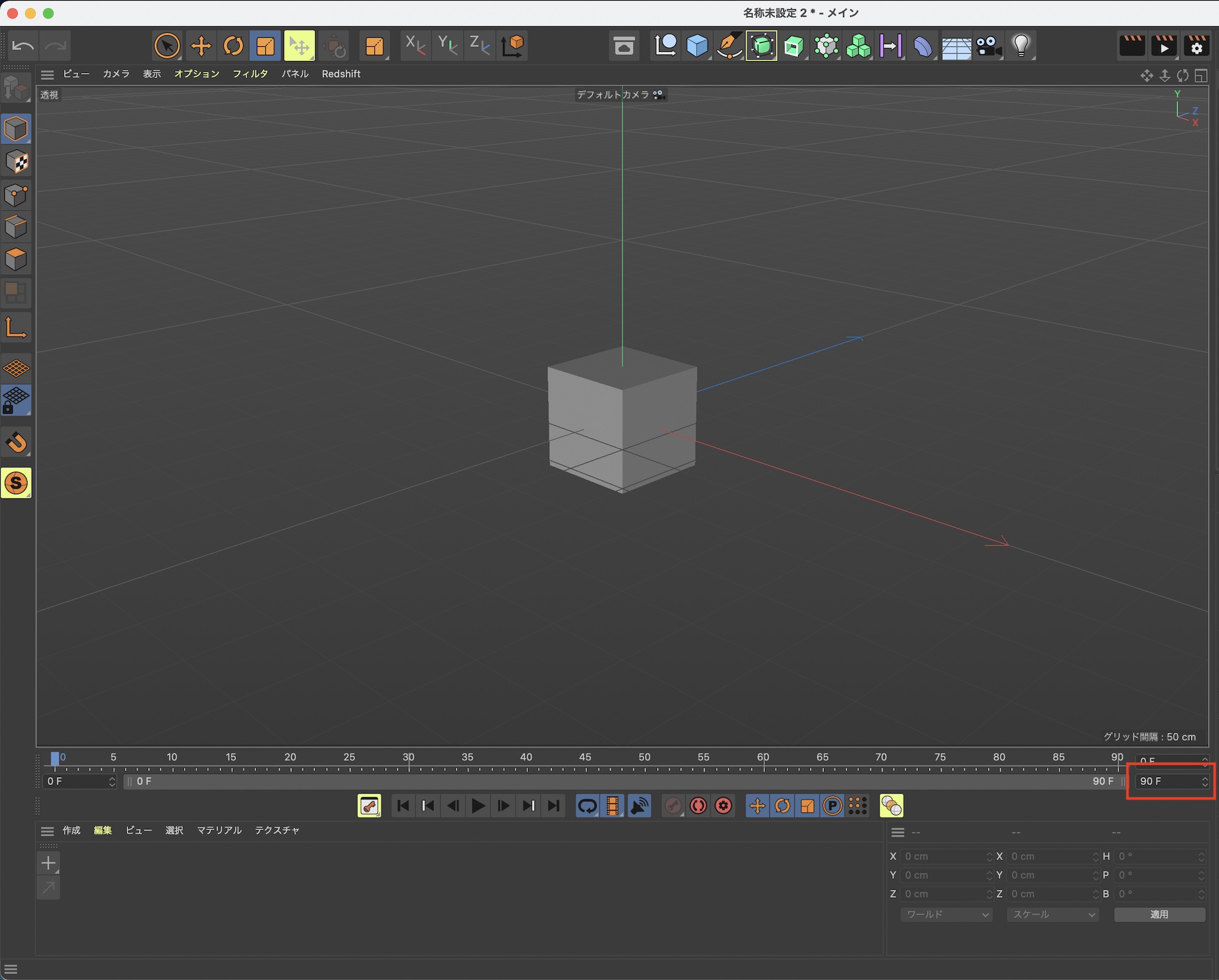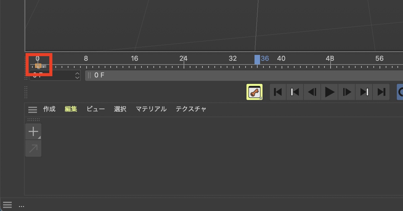 オブジェクトをビューポートに追加した上でタイムインジケータを「0秒」にした状態にします。