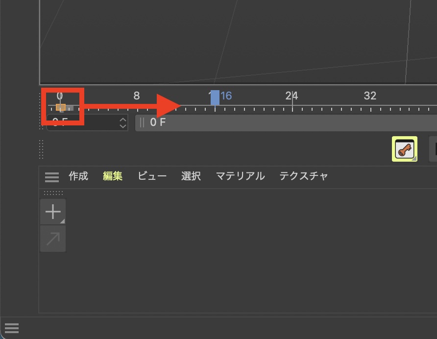 なお、タイムライン内での移動やスケールの変更はビューポートと同様に「1」、「2」キーとマウスをドラッグさせることで操作できます。「1」キーは移動で「2」キーはスケールの変更となります。