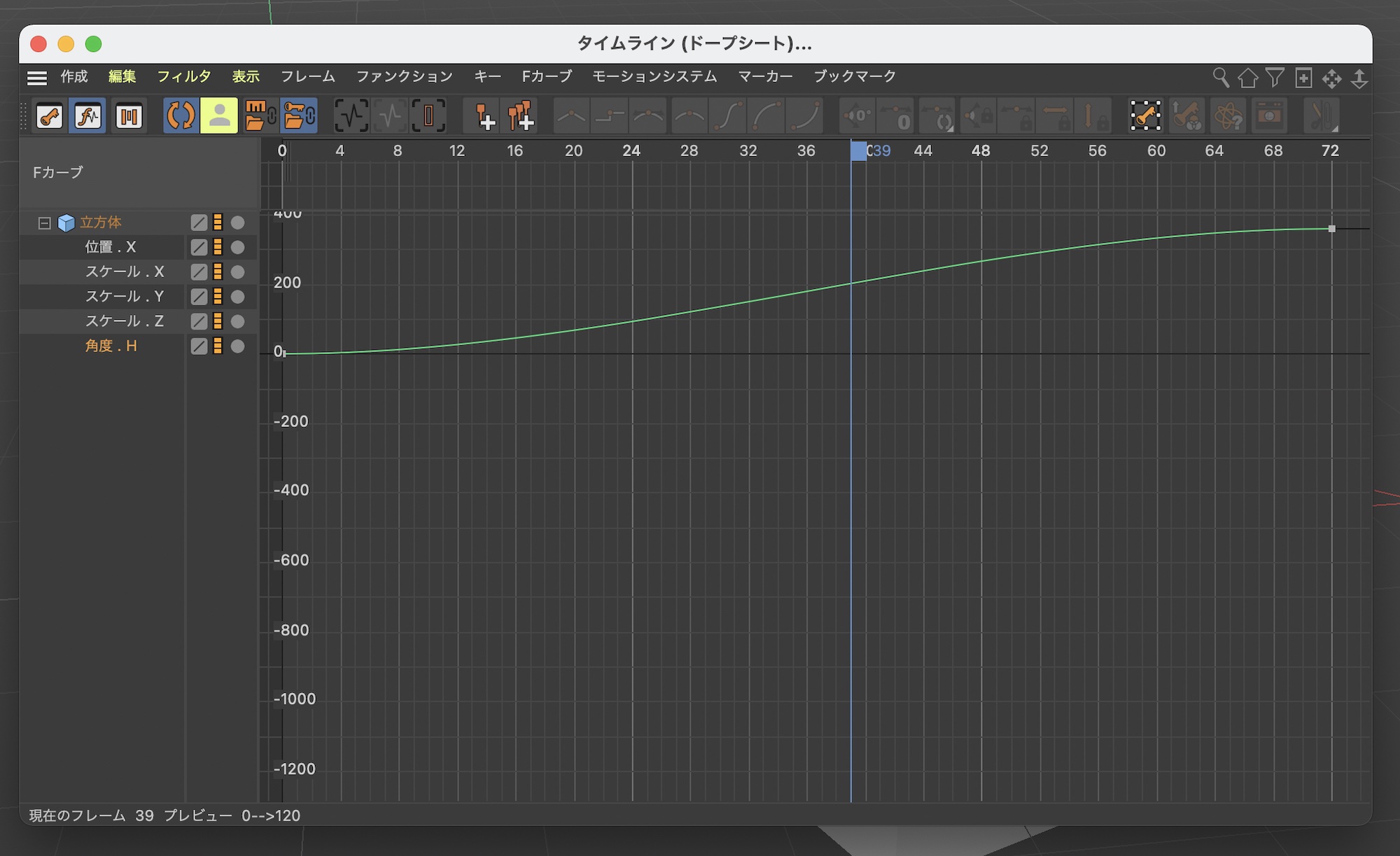 ドープシードとFカーブではキーフレームの削除や複製、タイミングの変更などを行うことが出来ますが、ドープシードは基本的にキーフレームそのものの調整となり、Fカーブはイージングを調整するAfter Effectにあるグラフエディタと同様のものになります。