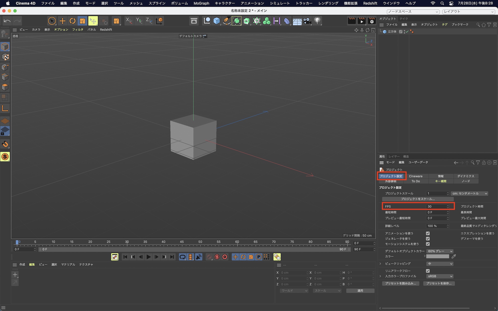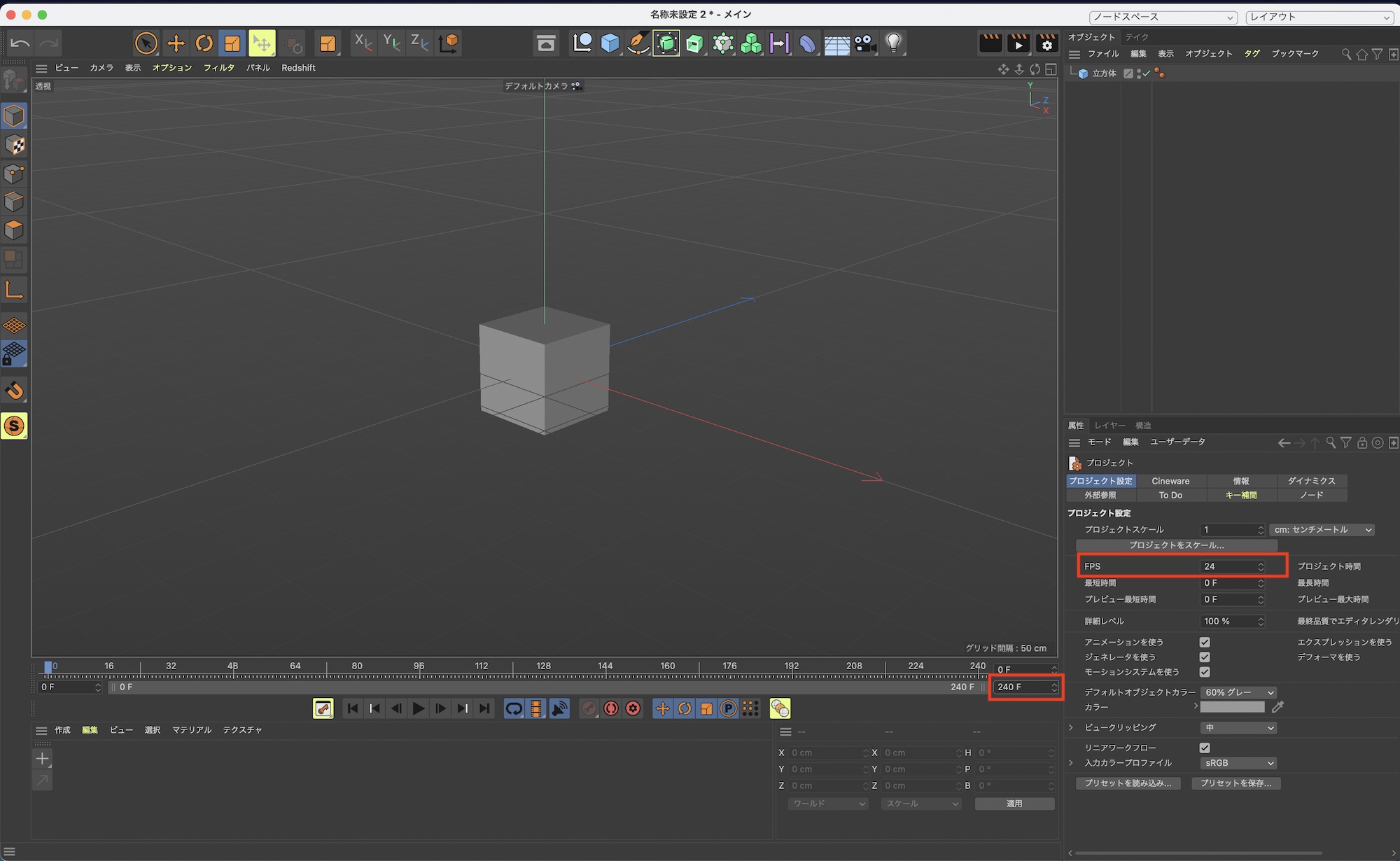 Cinema 4Dでは主に3つの場所でフレームレートやシーンのフレームを変更します。変更箇所によって用途が異なってくるので、下のチュートリアルに合せて必要な項目を設定してください。