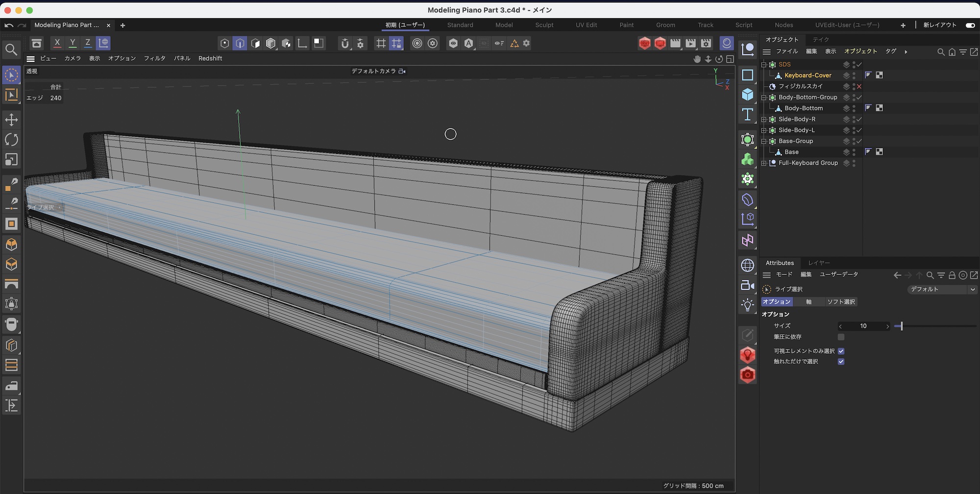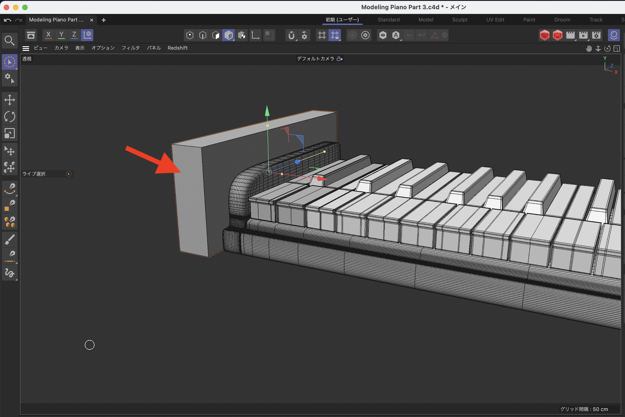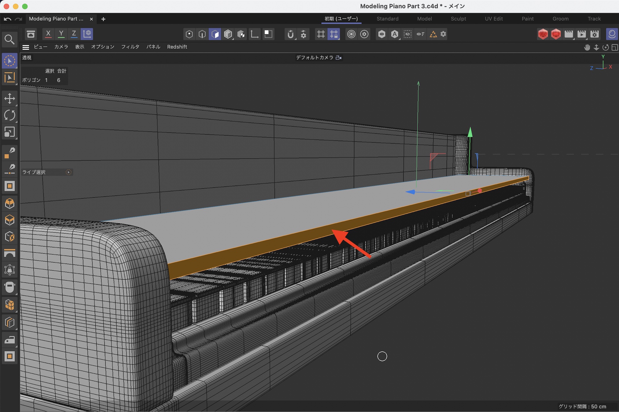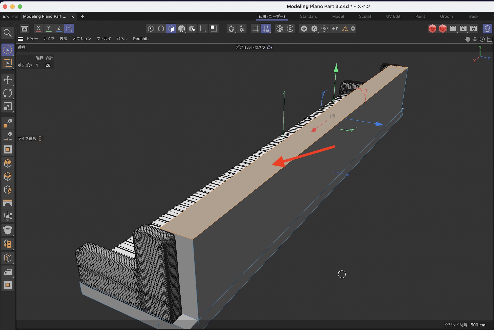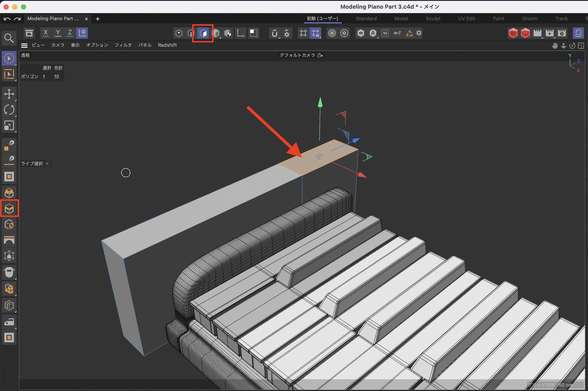 さらに鍵盤の後ろあたりをループカットでカットします。