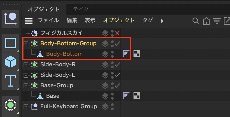 オブジェクトが「Side-Body」の横と「Base」の部分に重なるようにサイズ調整を行います。