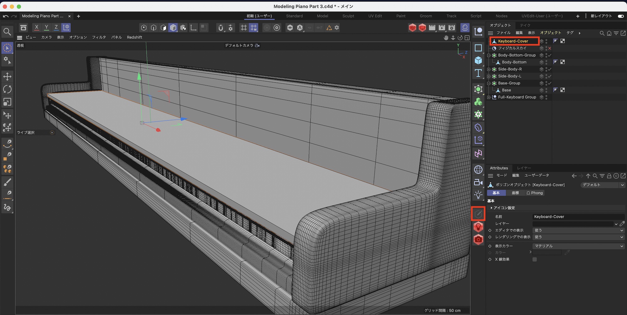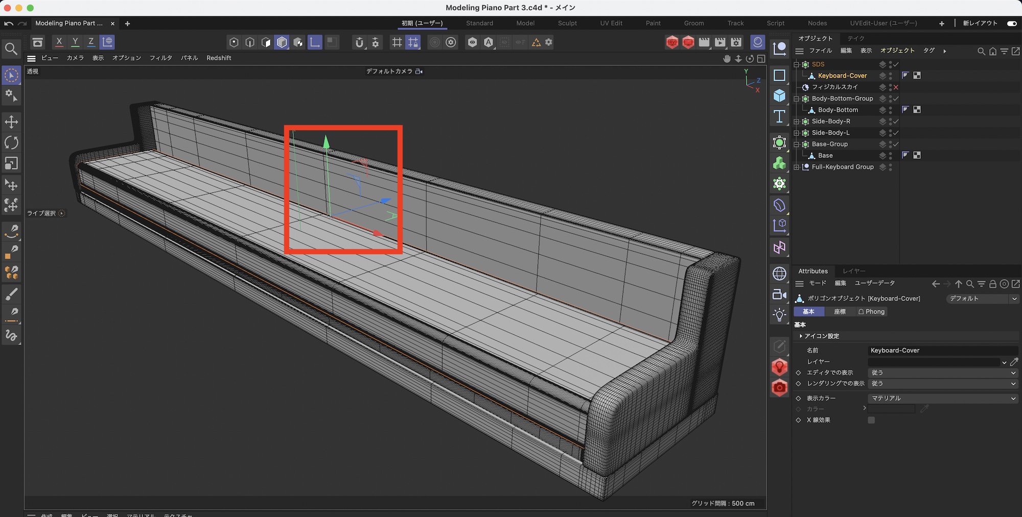 鍵盤蓋(C)のモデリング