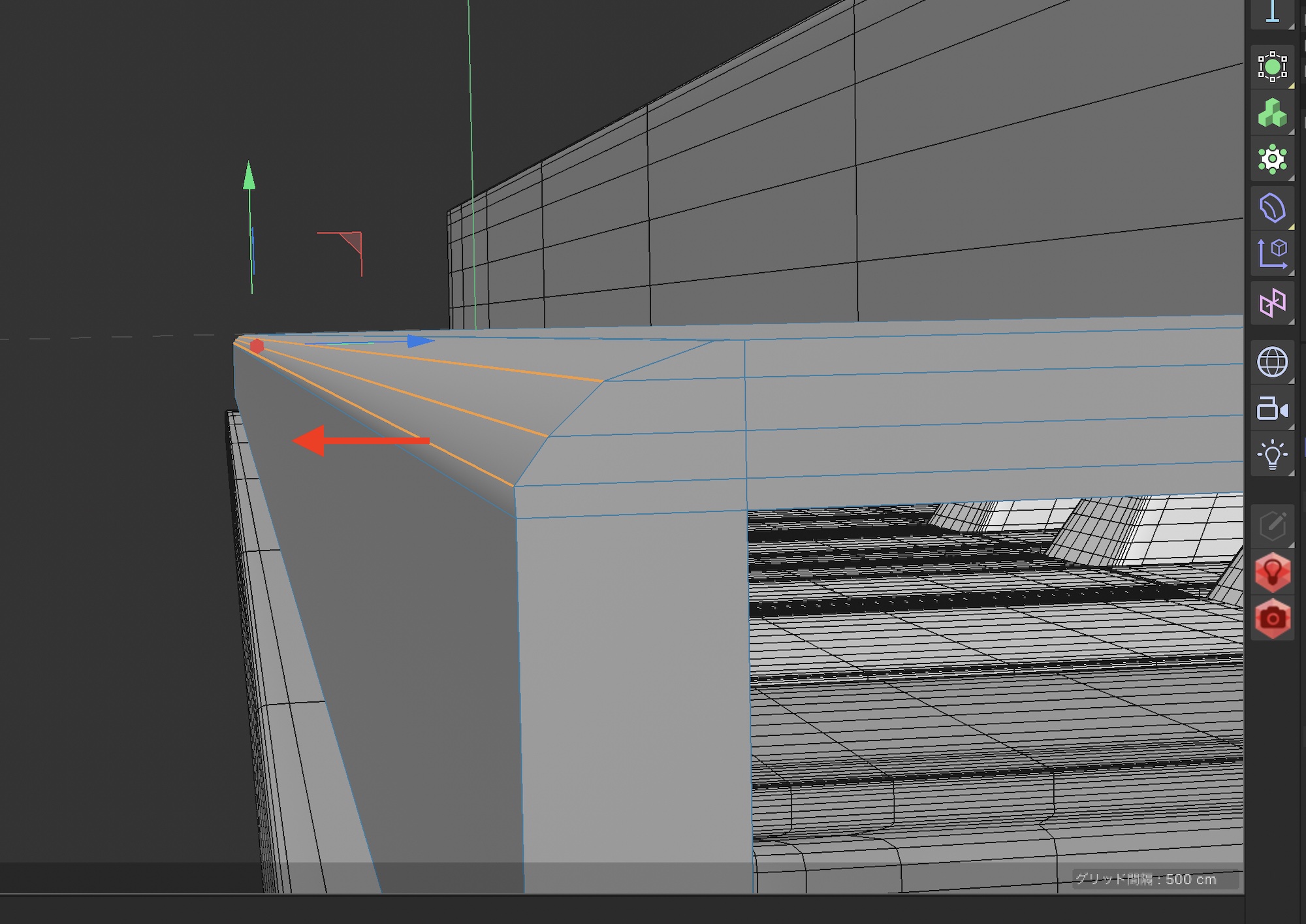 サブディビジョンサーフェス(SDS)用にコントロールエッジを追加します。ループカットを使ってオブジェクトの各角をカットしていきましょう。