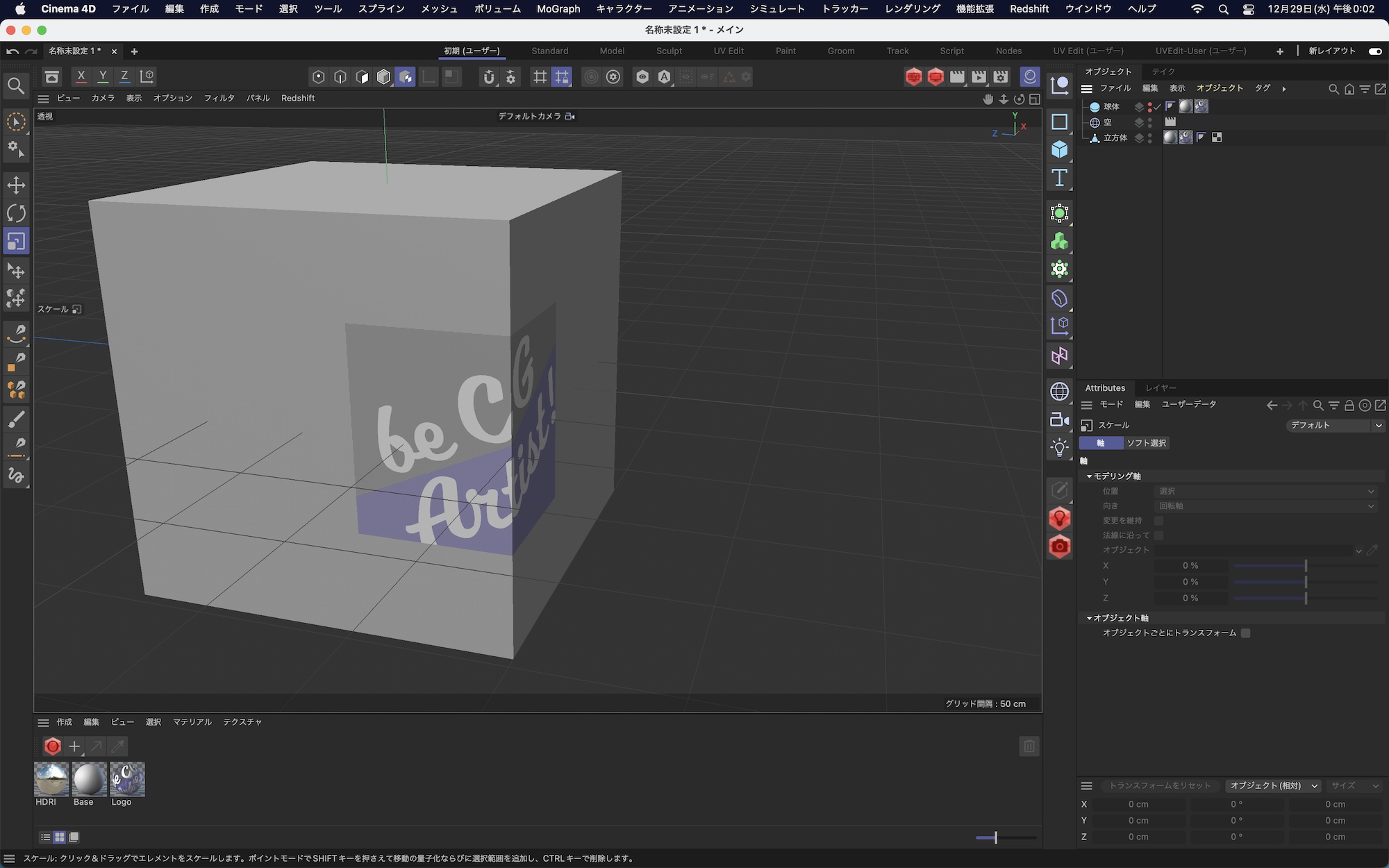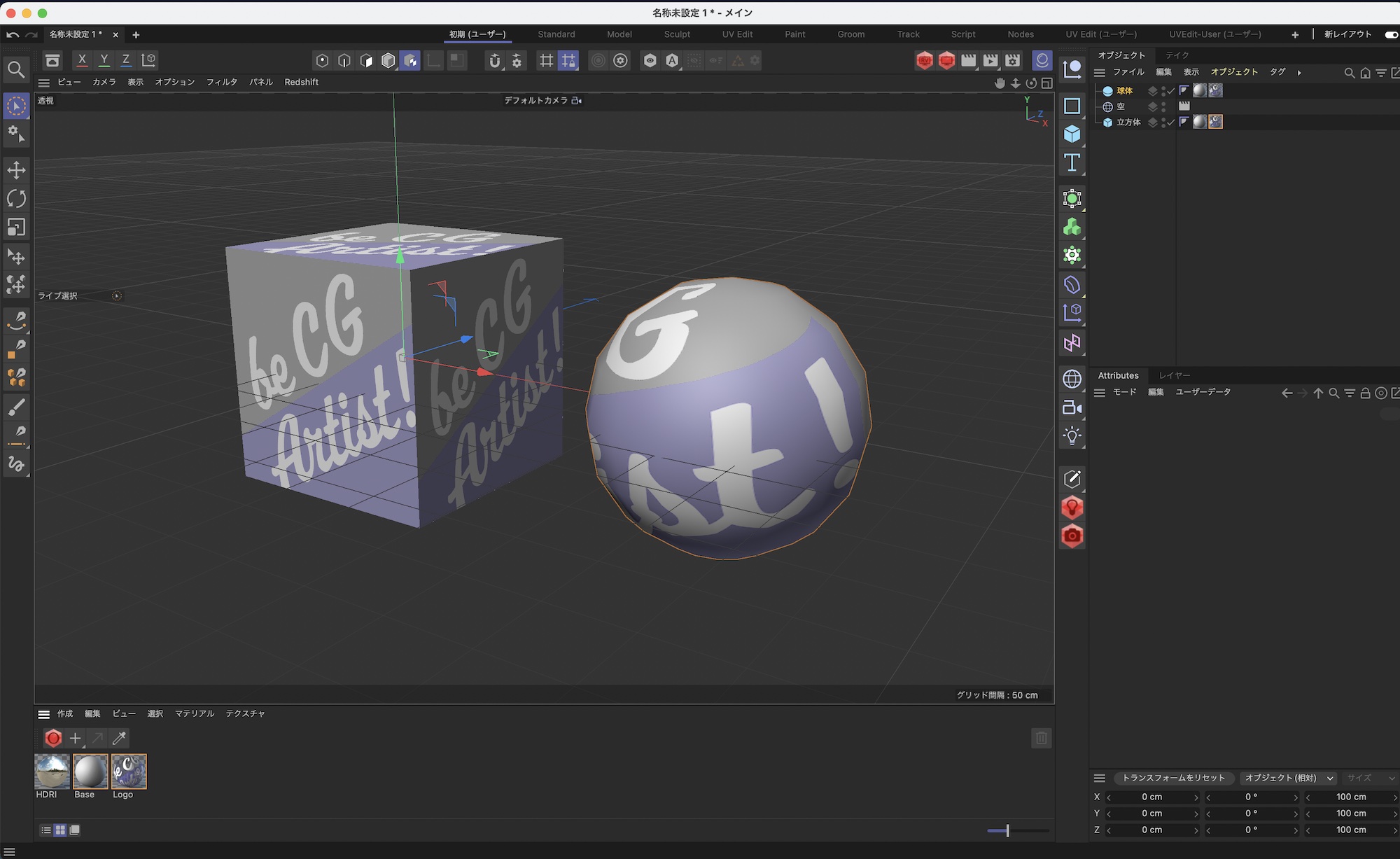 [Cinema 4D] 投影法とテクスチャモードを使って、テクスチャをお好みのスケールや位置を調整してみよう