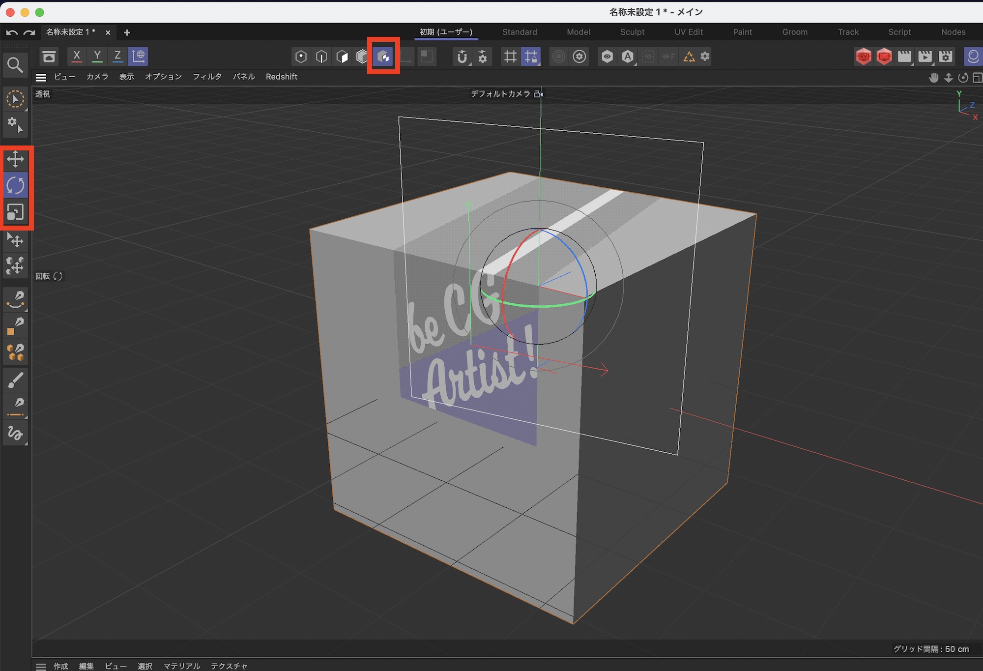 属性マネージャからマテリアルの調整を行うのも一つの手ですが、あまり直感的に行えません。そこで便利なのが、「テクスチャモード」を使って調整を行う方法です。