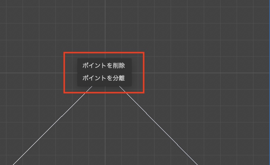 「ポイントを削除」はその名の通りポイントが削除され、「ポイントを分離」を選択すると下のようにスプラインが分断され、ポイントが2つになりました。