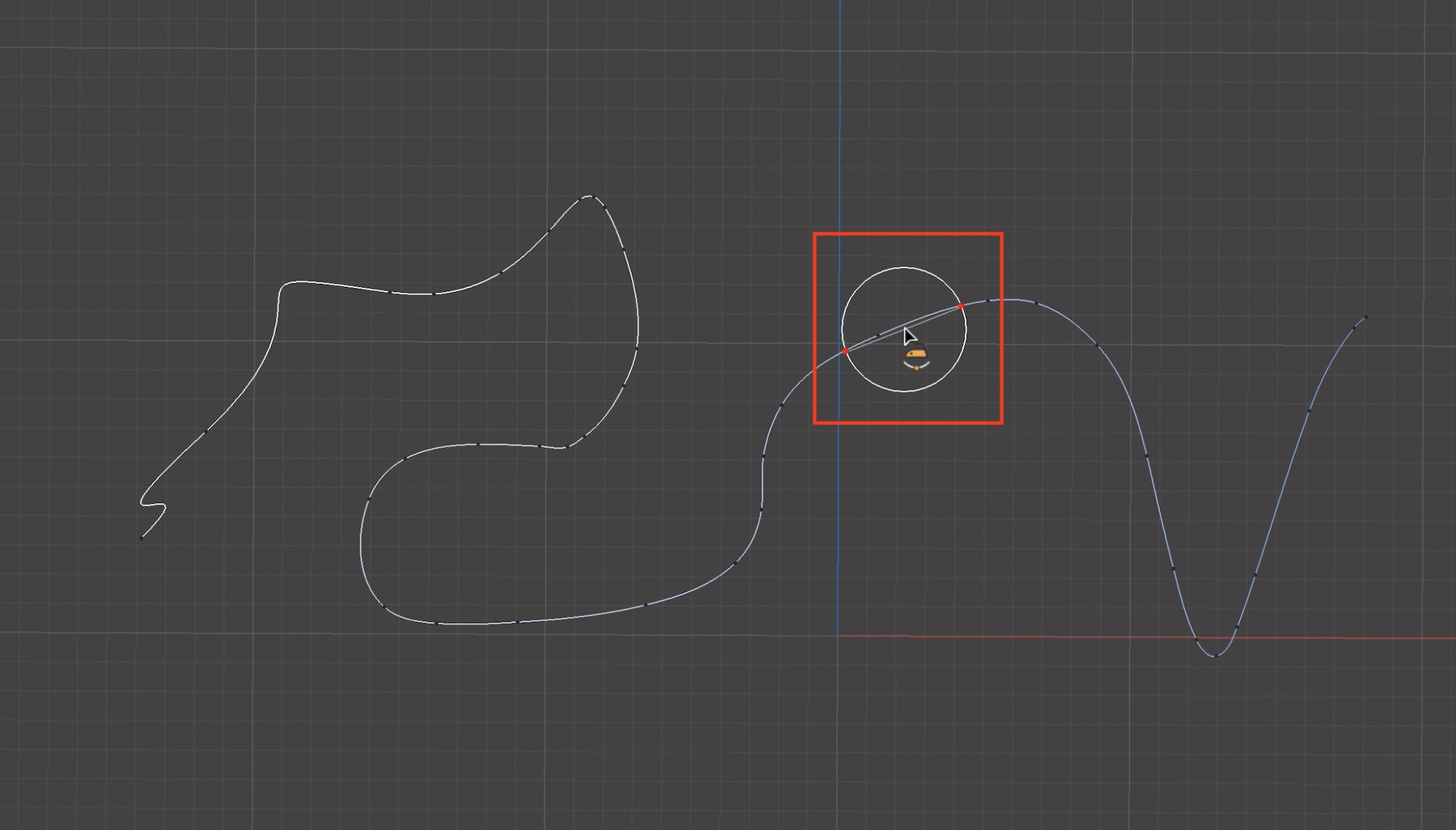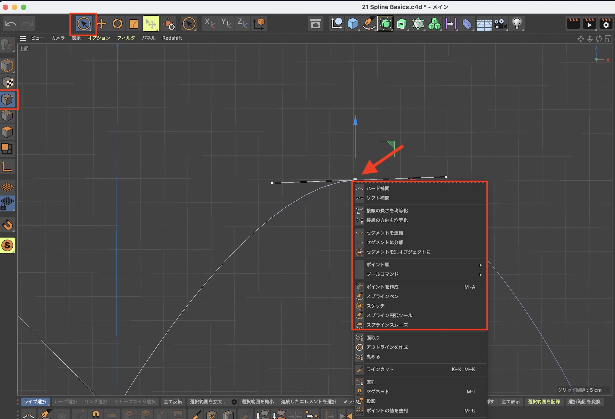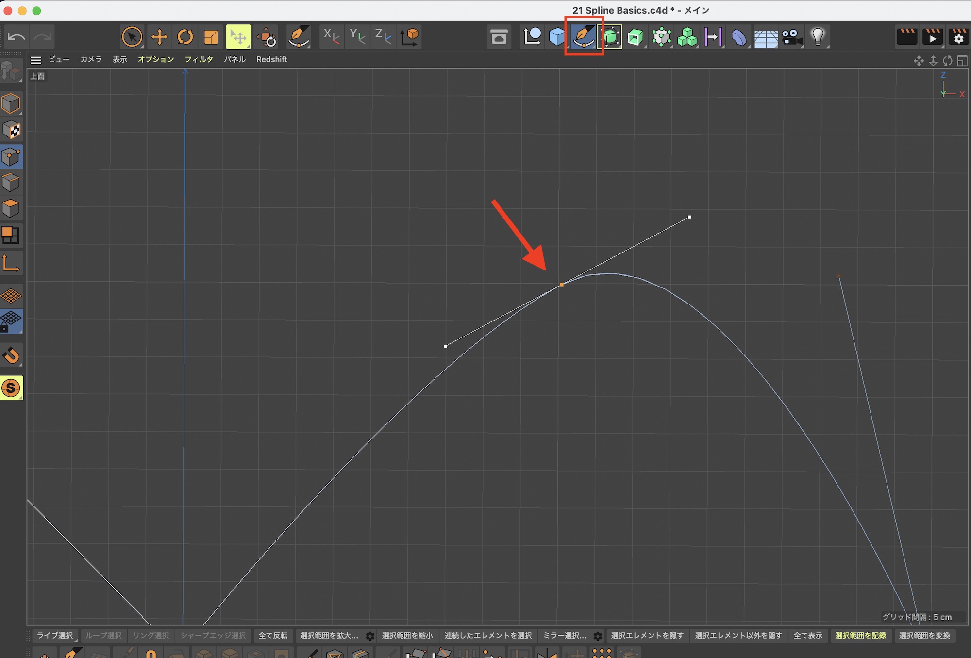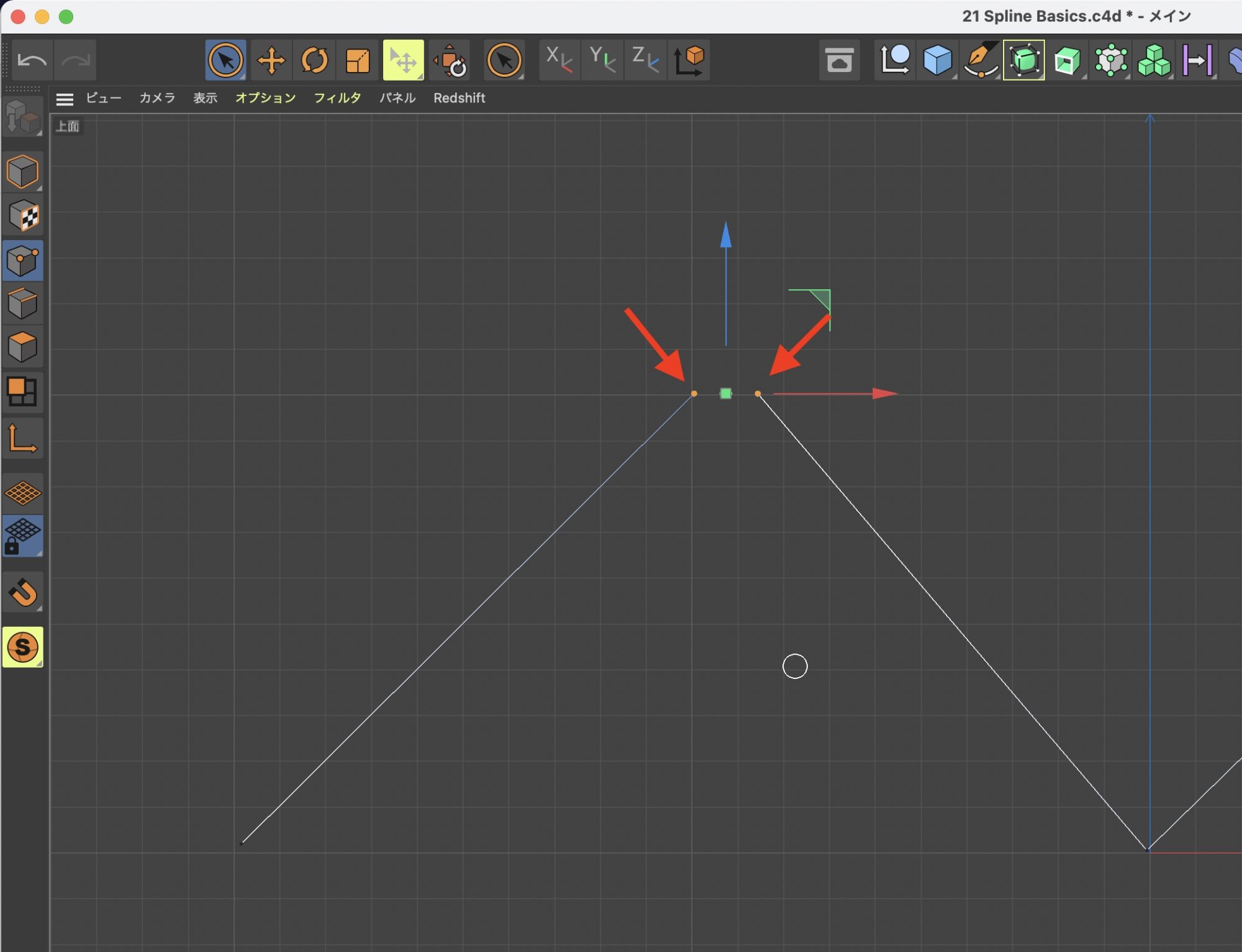 きれいな円を使ったスプラインを作成する際に使用するツールです。ポイントを作成したあと左クリックを長押ししながらマウスをドラッグすると、スプラインの向きや円の大きさを調整できます。