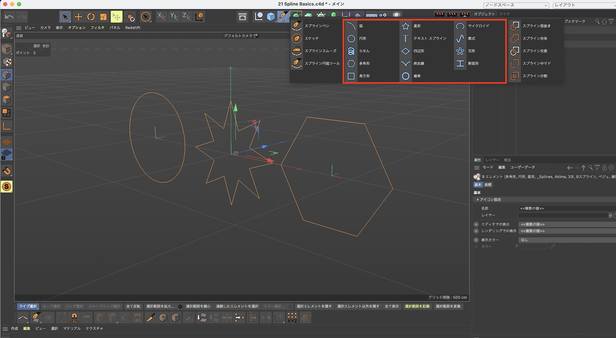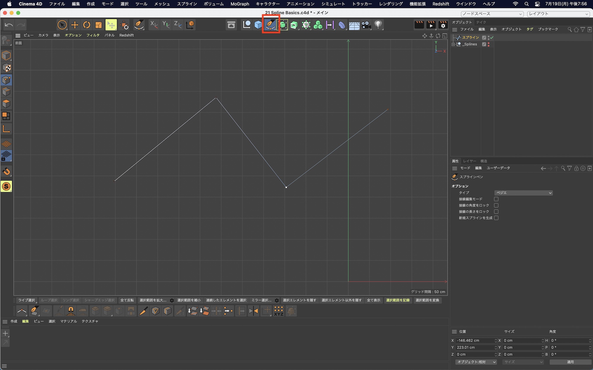 プリセットを使わない場合はスプラインペンを使ってスプラインを作成することも可能です。