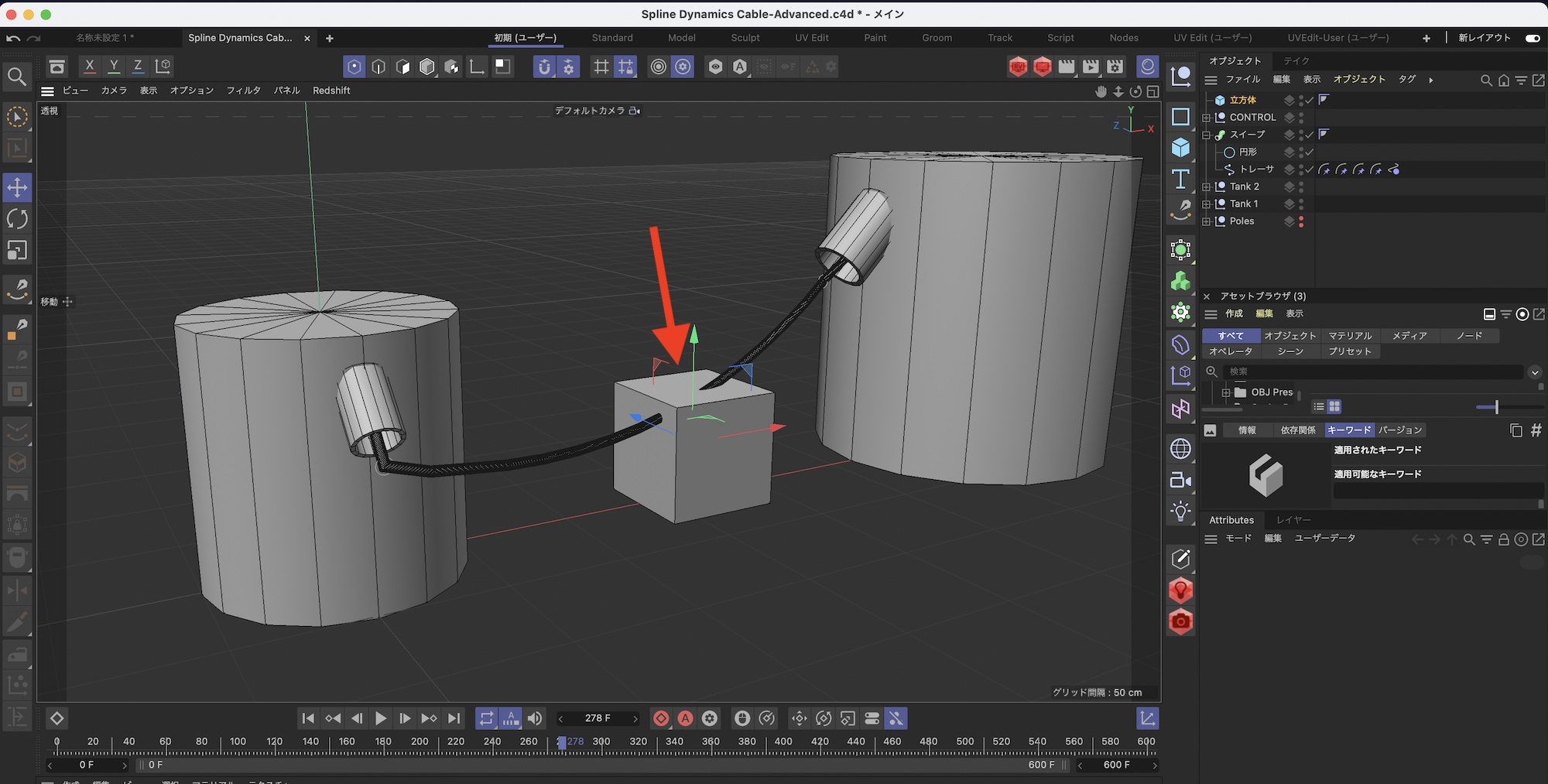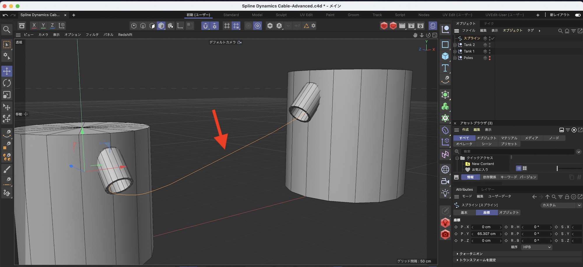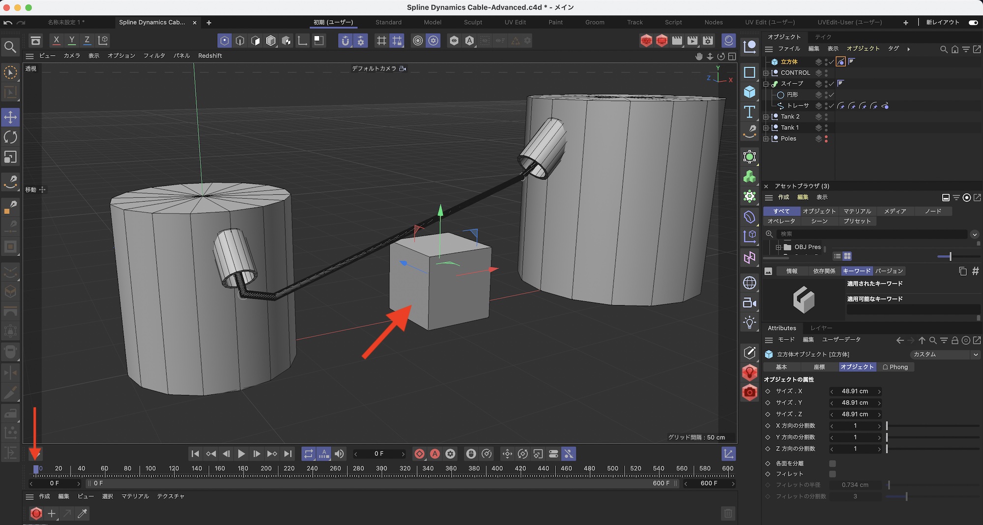 [Cinema 4D] スプラインダイナミクスを活用してより複雑なケーブルや衝突オブジェクトを追加してみよう