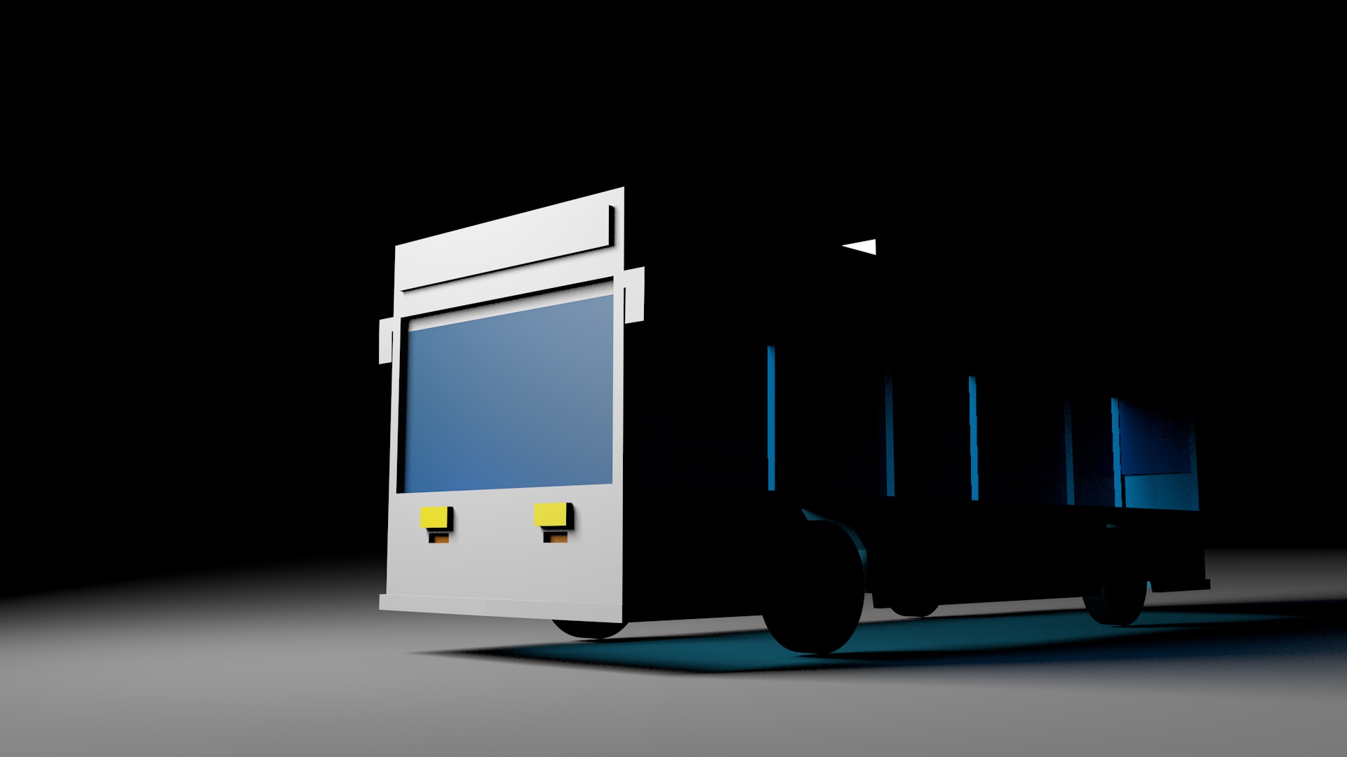 この状態でレンダリングしたものがこちら。いい感じですが、奥の床に影が現れているので、追加でライトオブジェクトをバスの真上に配置してみましょう。