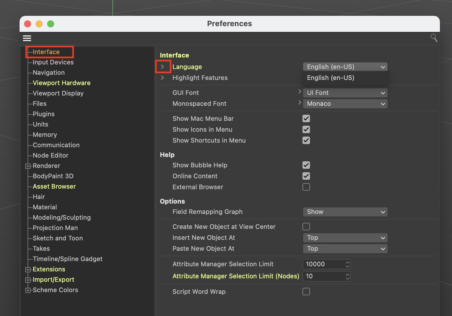 日本語でCinema 4Dを使うのが一番わかり易いですが、英語の方がヘルプも見つけやすい場合もあるので、好みの言語に設定して使ってみると良いでしょう。