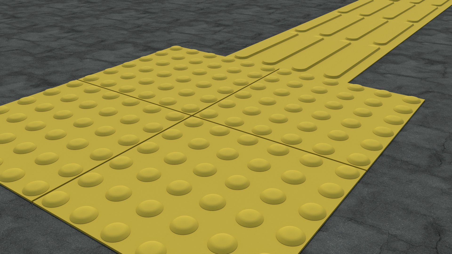 レンダラーをCorona Rendererに変更し他の点字ブロックと、HDRIやアスファルトを追加してレンダリングを行ってみたものがこちら。だいぶフォトリアルになってきました。