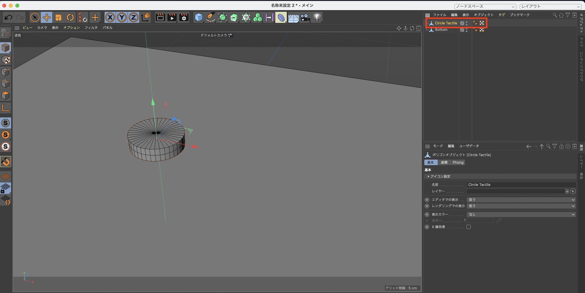 編集可能にした円柱は「Circle-Tactile」など分かりやすい名称に変更すると良いでしょう。