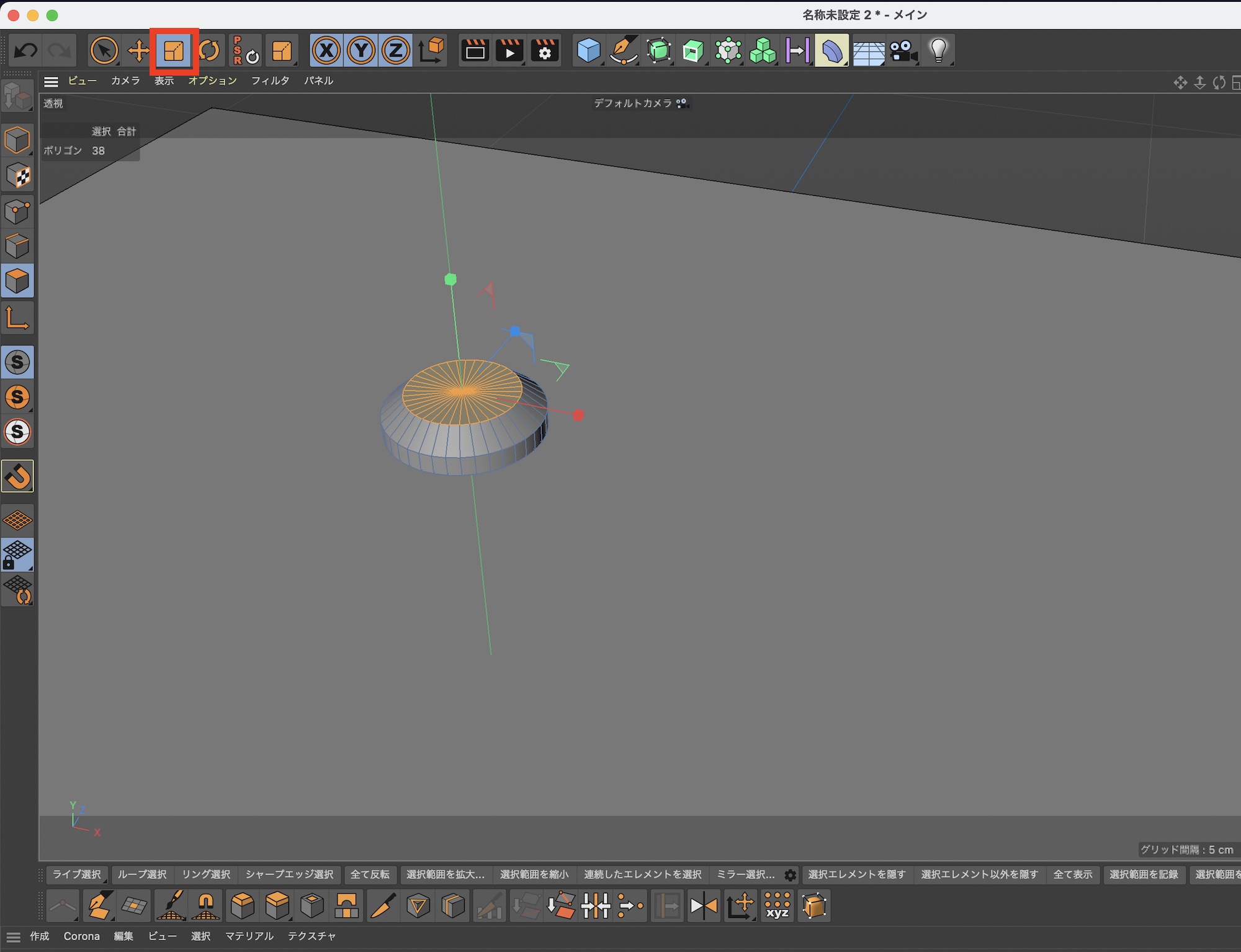 その後で「スケール」を選択して、上部のポリゴンを小さくしましょう。