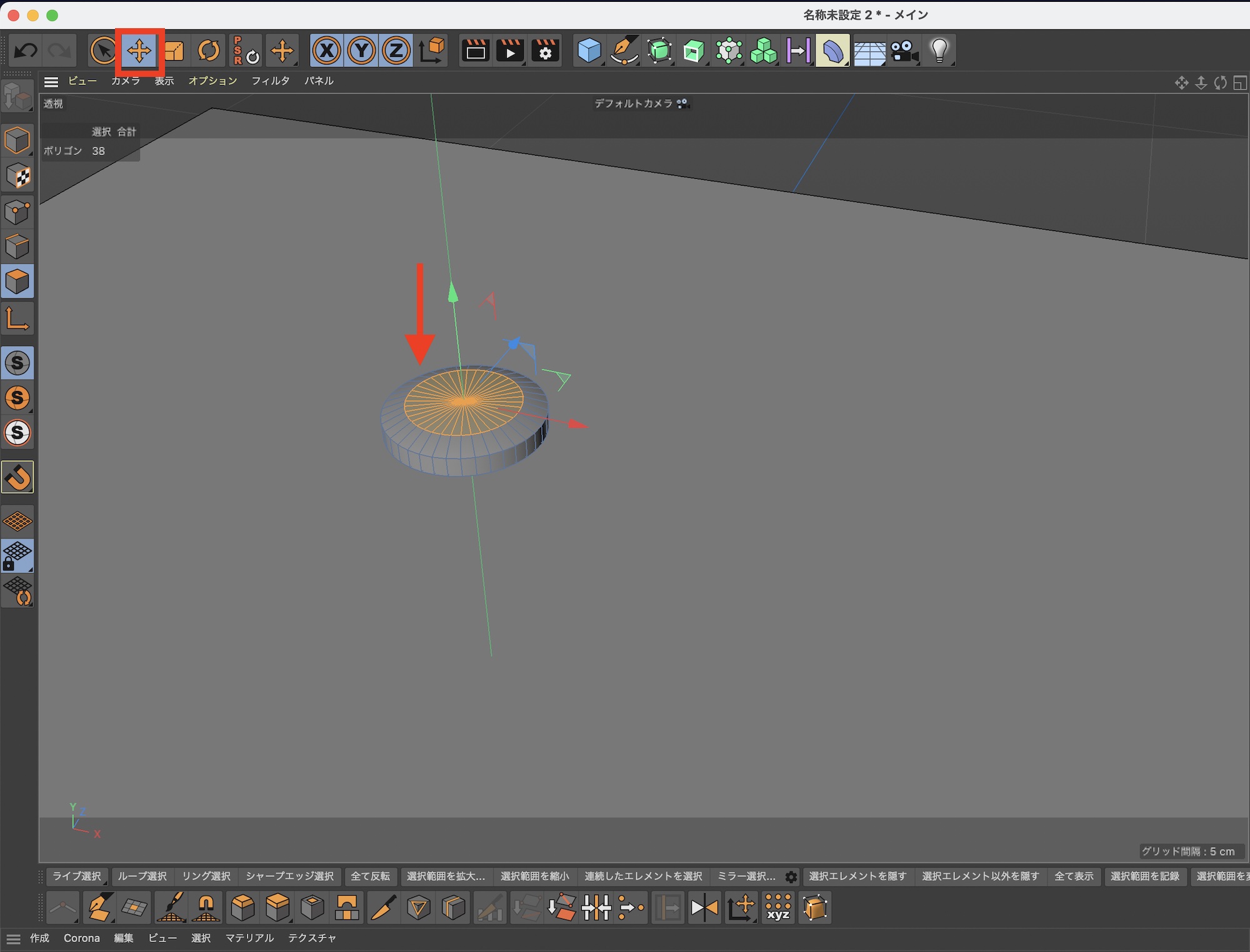 今度は移動ツールを使用して選択されたポリゴンを下に動かし、高さを調整します。